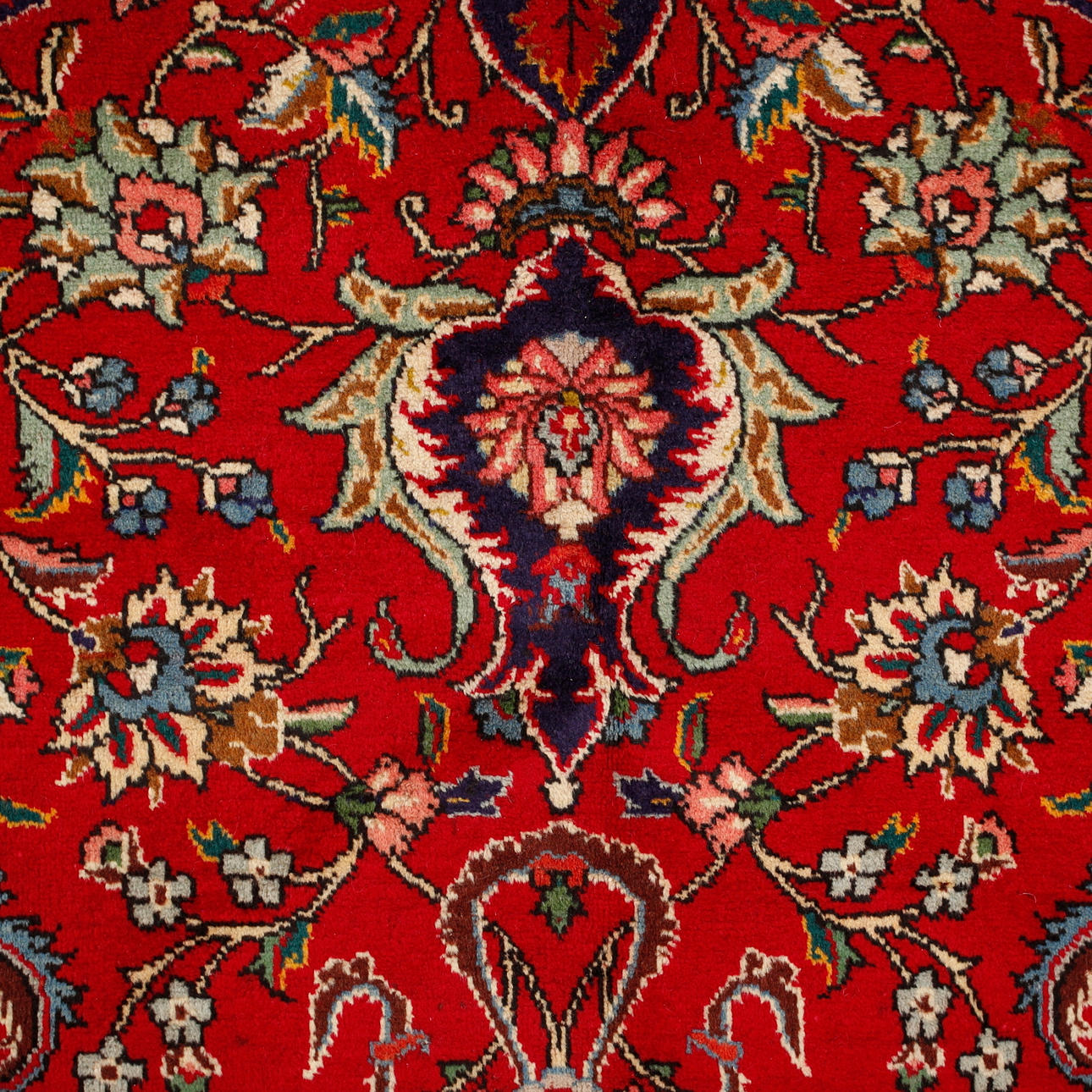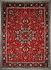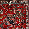 Hand-knotted Persian rug in wool on cotton warp, Täbriz. Star-shaped medallion on overpatterned red background.