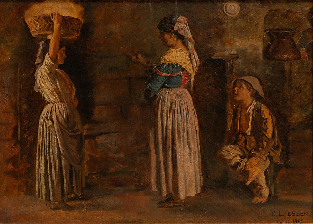 Carl Ludwig Jessen was born in Deezbüll, North Frisia, in what was then the Duchy of Schleswig, a region influenced by both Danish and German culture. Raised in a rural community, he developed an early appreciation for the everyday life and traditions of his surroundings. Recognising his talent, he enrolled at the Royal Danish Academy of Fine Arts in Copenhagen, where he studied under prominent artists of the mid-19th century. His academic training equipped him with a mastery of drawing, composition, and the use of light, while also instilling a respect for capturing life with authenticity.