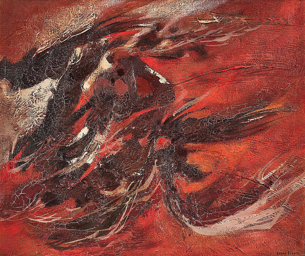 Tabuchi’s paintings often combined organic shapes, fluid lines, and layered colour fields, suggesting landscapes, cosmic visions, or dreamlike interiors. He employed techniques that created depth and texture, sometimes incorporating gestural brushwork reminiscent of calligraphy. His compositions balanced spontaneity with structure, resulting in works that felt both intuitive and deliberate. Over time, his art shifted further toward pure abstraction, yet it retained a lyrical quality that evoked nature, spirituality, and the unseen forces of the world. This blending of Eastern and Western approaches gave his work a distinctive voice in the post-war abstract movement.