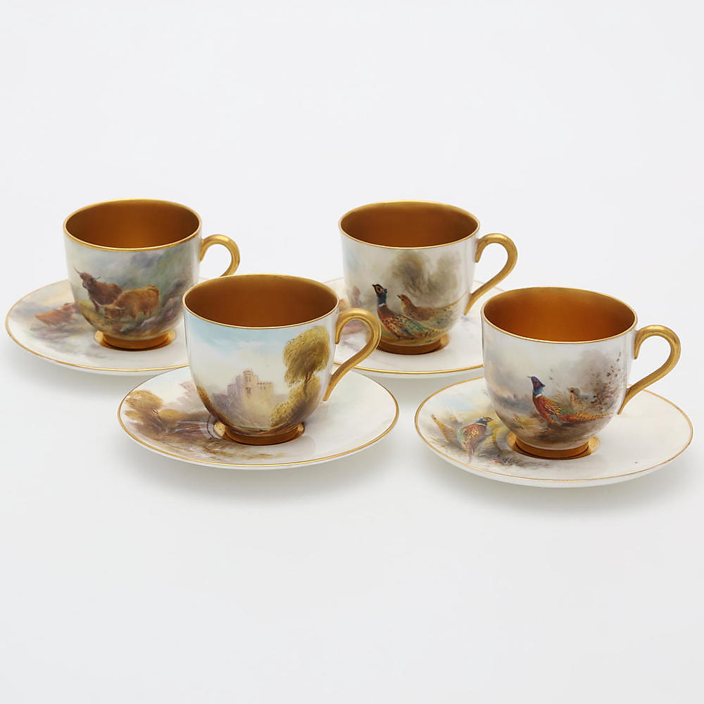 Building on his father’s legacy, Harry Stinton became renowned for his transformative approach to ceramic painting. He reimagined the beloved highland cattle scenes pioneered by John Stinton Junior, blending tradition with innovation. Rich purples and autumnal tones became Harry’s signature, infusing his landscapes with atmosphere and emotional depth. His meticulous hand adorned vases, plates, and cabinet pieces, expanding his repertoire to include sheep, gamebirds, and evocative, misty countrysides. His unique atmospheric style brought new dimensions to pastoral ceramics and watercolors, enhancing Royal Worcester’s prestige and endearing collectors across generations.