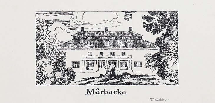 Nu har 25 av Thonton Oakleys originialteckningar i penna och bläck från ”Scandinavia Beckons” landat hos Ekenbergs. Samtliga är illustrationer från den svenska delen av reseskildringen. Vi hittar bland annat porträtt av Selma Lagerlöf, Gustav V och kända landmärken som Kalmar slott och Glimmingehus.