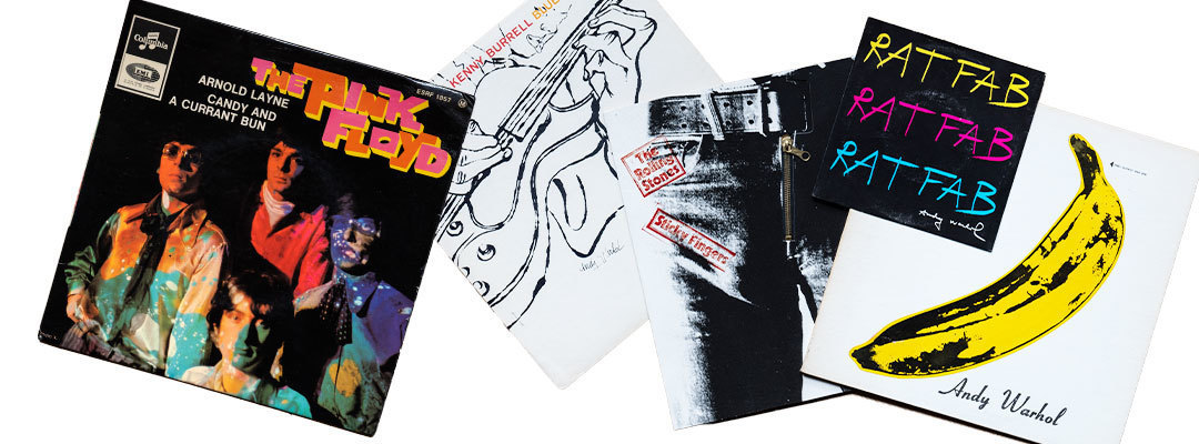 ÄVEN ANDY WARHOL GJORDE FLERA skivomslag. Jan-Erik radar upp de berömda Warhol-omslagen: Rolling Stones album ”Sticky fingers” med ett ”riktigt” blixtlås (värde cirka 700 kronor), The Velvet Undergrounds berömda debut-LP med den avskalningsbara bananen (värde cirka 5 000 kronor). Andy Warhol gjorde även flera jazz-omslag för Blue Note, ett skivbolag känt för sin omslagsdesign.