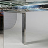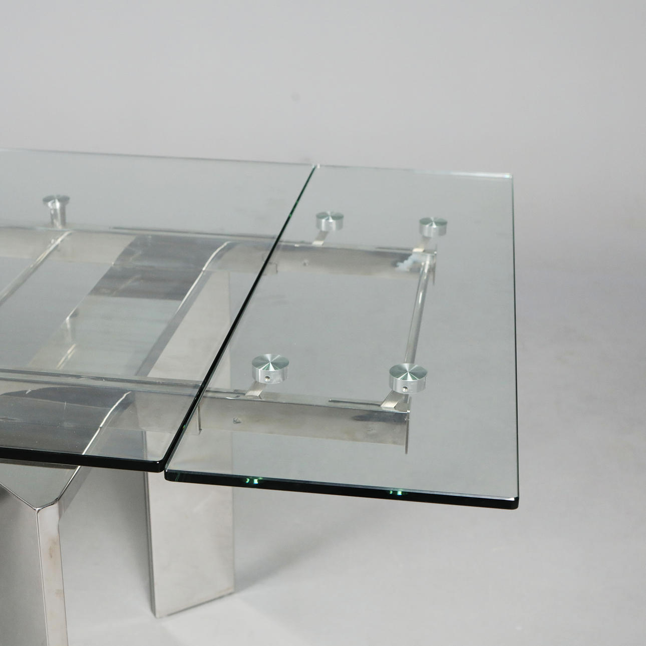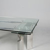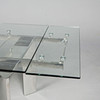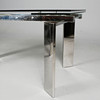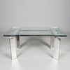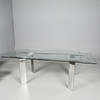 glass and polished metal, draw leaf action, top 220cm x 90cm fully extended.