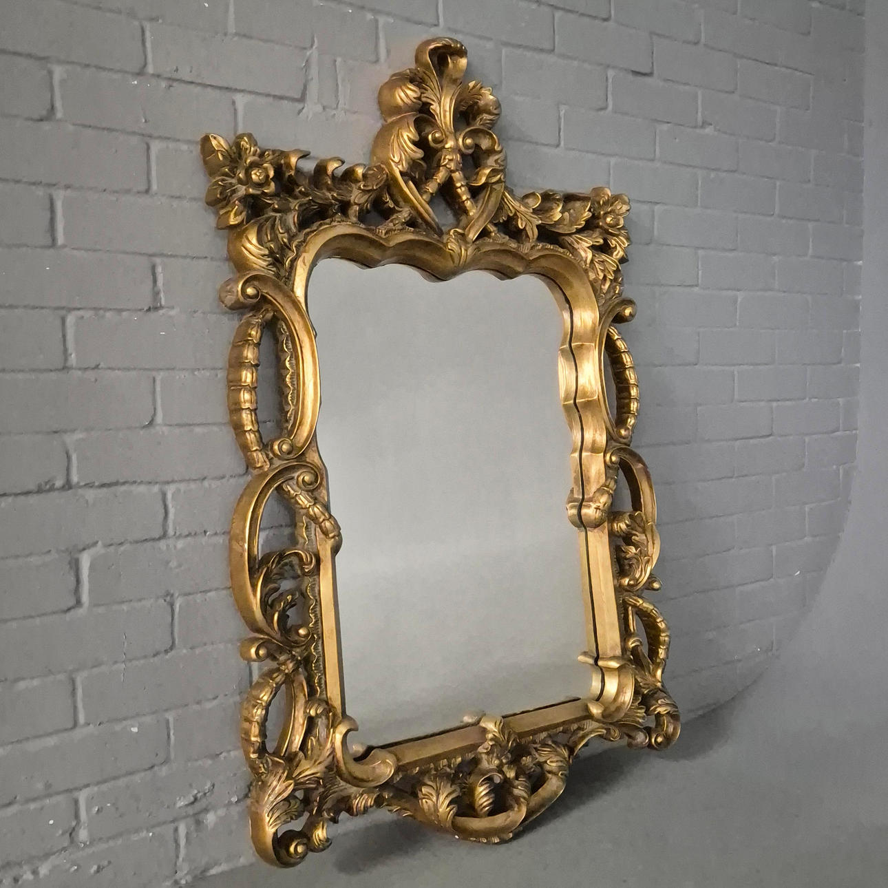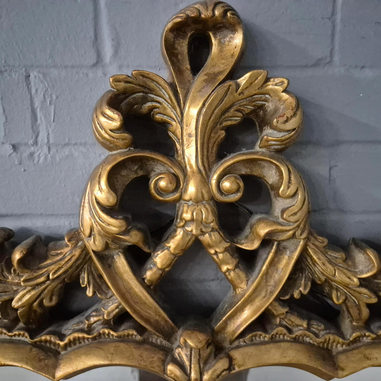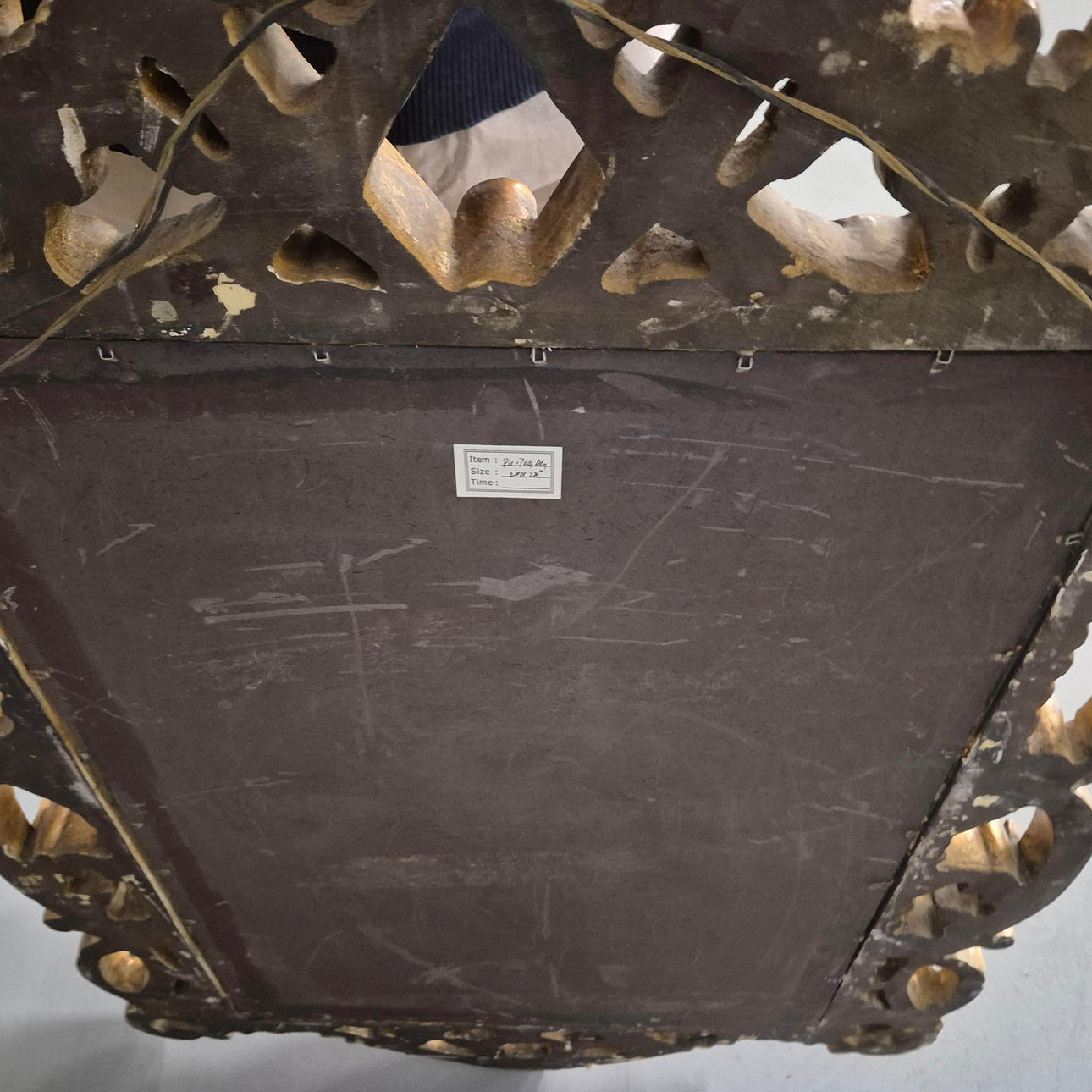 elaborately moulded and gilded frame, with a large scrolling floral pediment, 124cm high, 74cm wide.