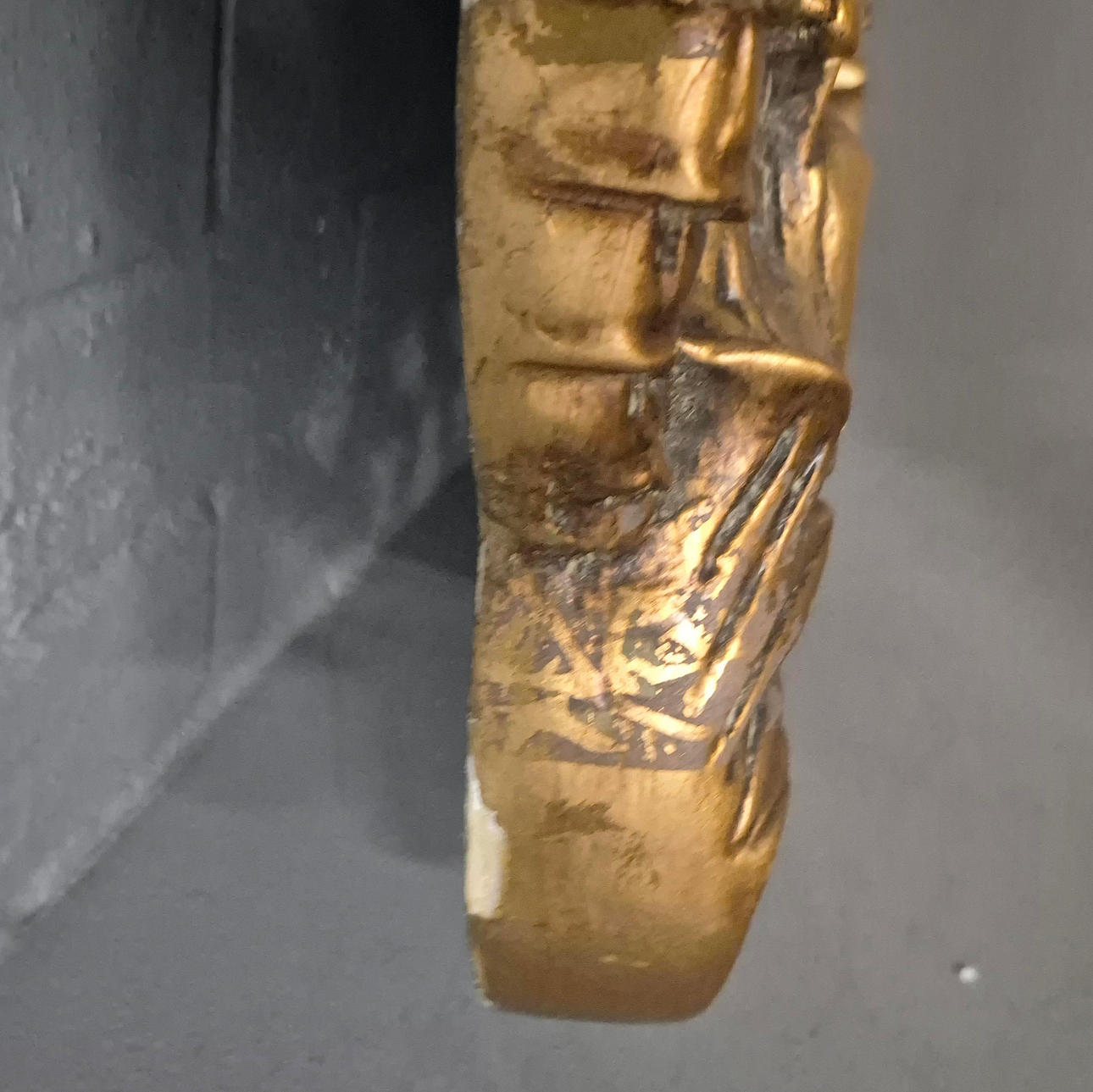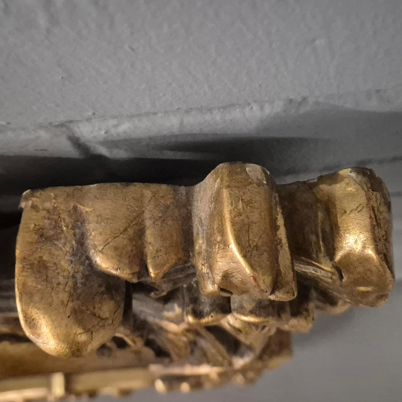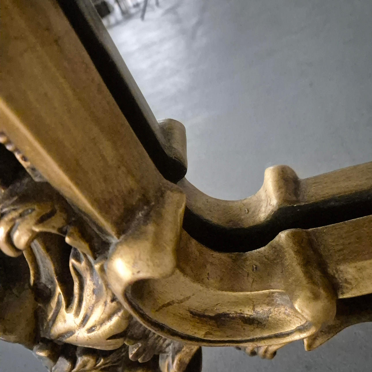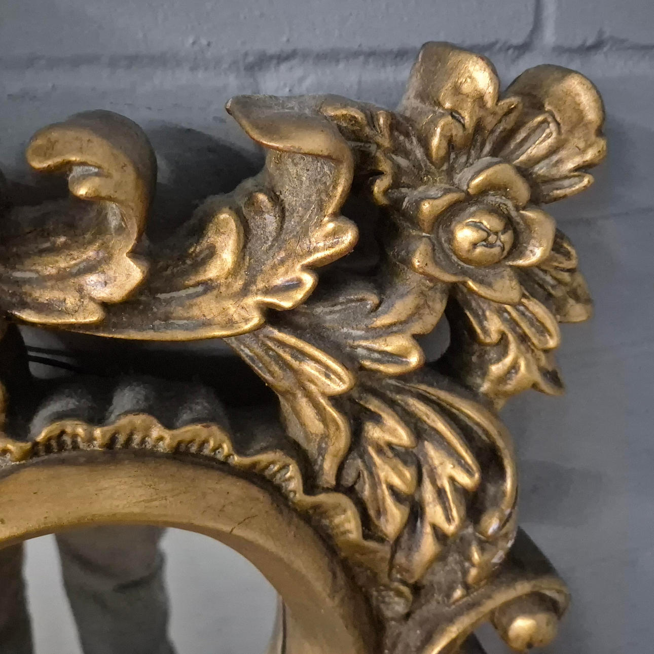 elaborately moulded and gilded frame, with a large scrolling floral pediment, 124cm high, 74cm wide.