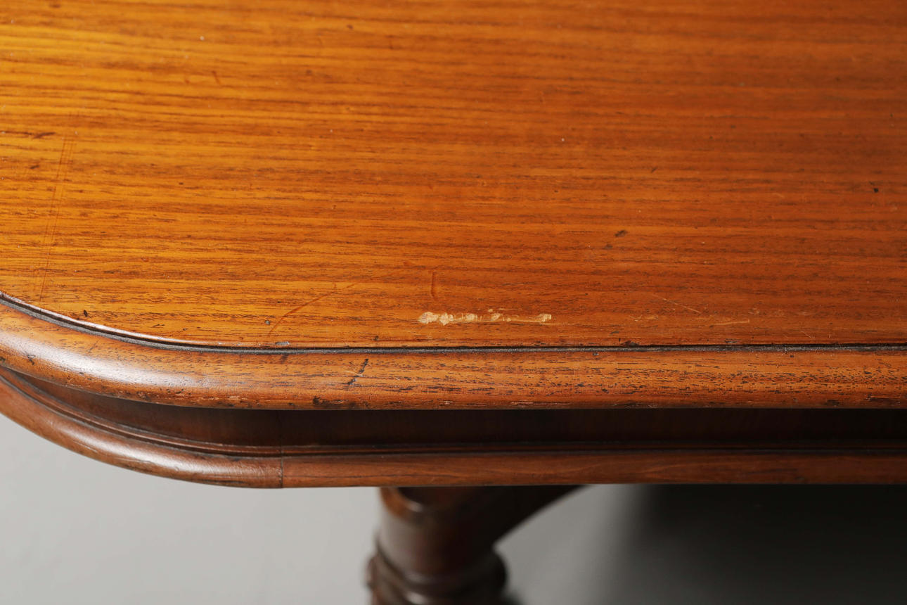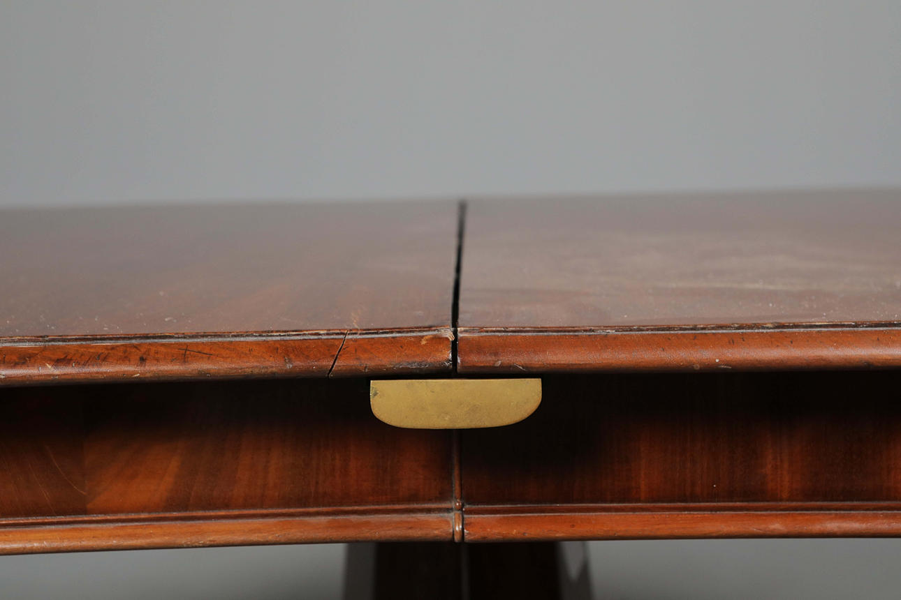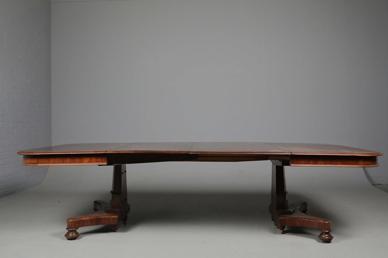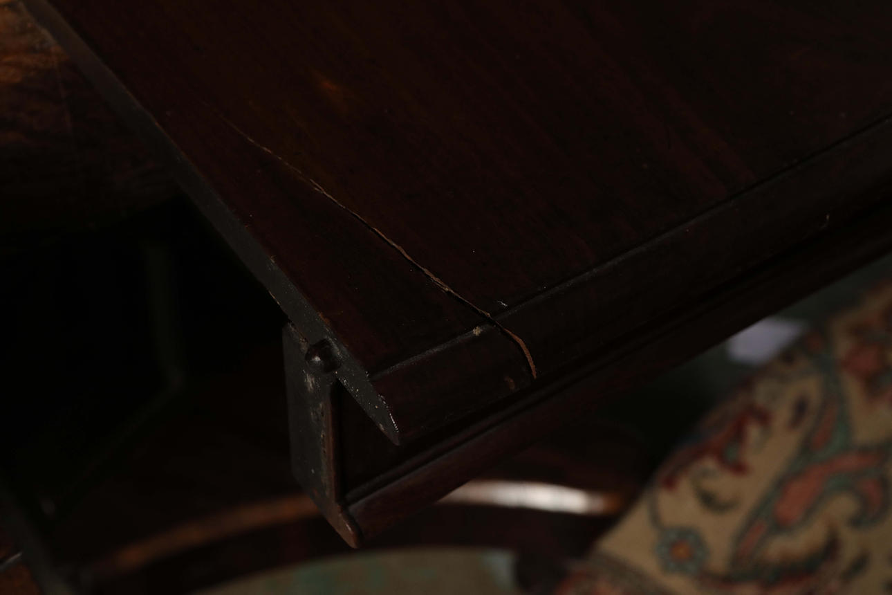 Second quarter 19th century mahogany, 75cm t x 143cm l x 126 cm d the facetted divided column opening to allow two extra leaves, one 71cm w the other 60 cm w, on a shaped base.