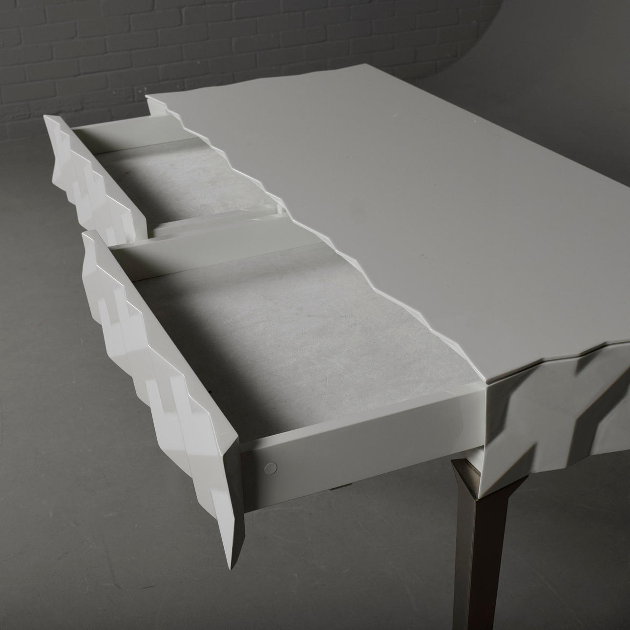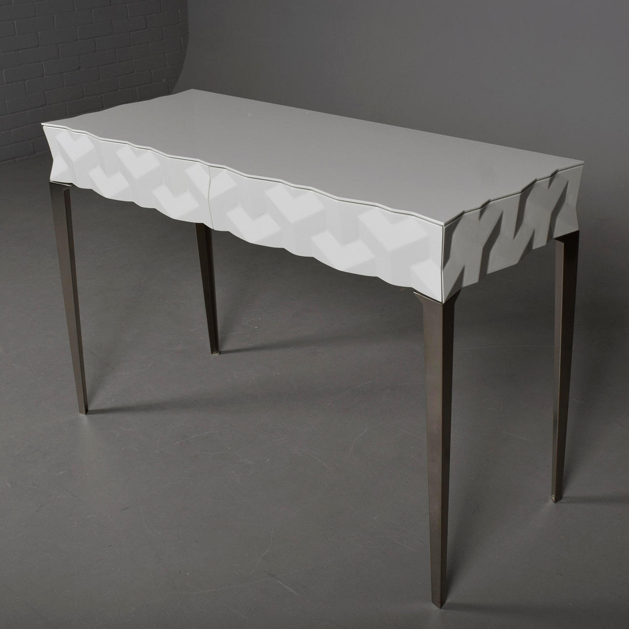 contemporary lacquered design, 2 soft bottomed drawers, 119cm x 47.5cm x 81.5cm approx.
