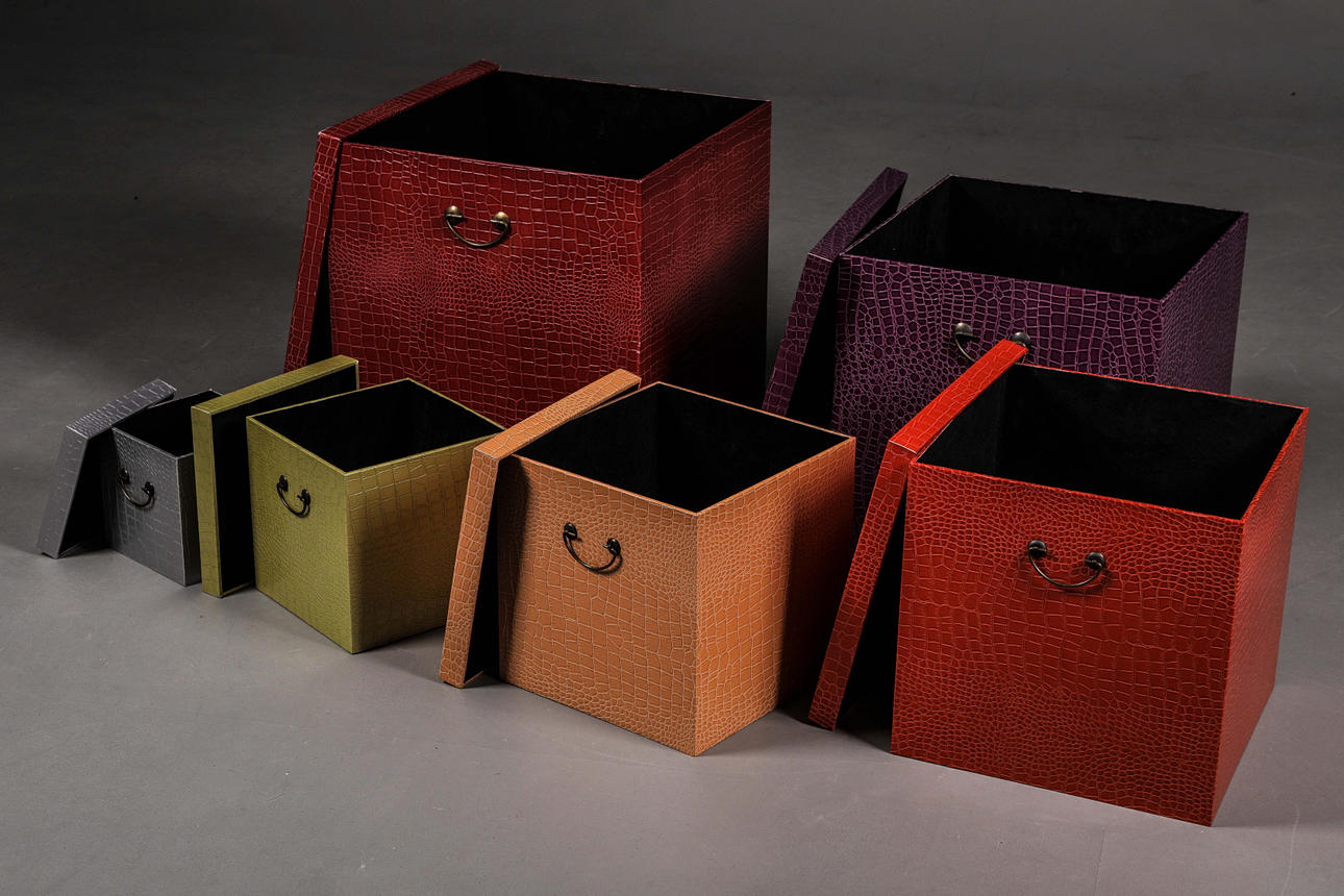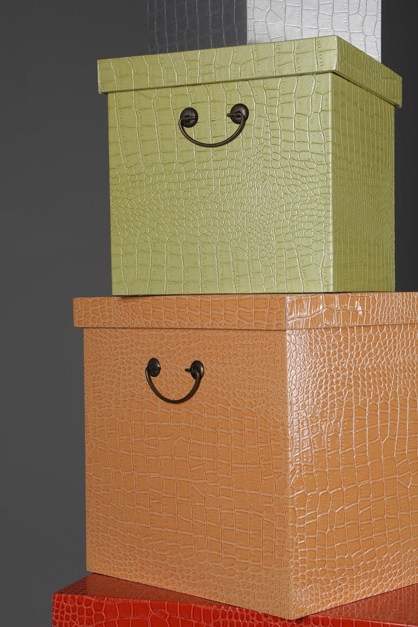 in different coloured mock croc finish with lids, largest 51cm t x 512cm w x 51cm d.