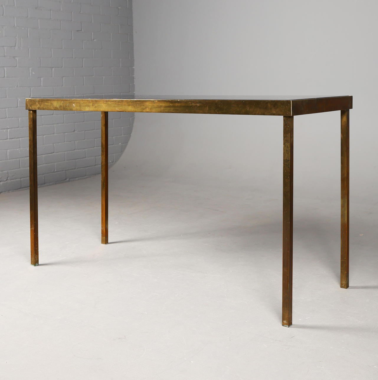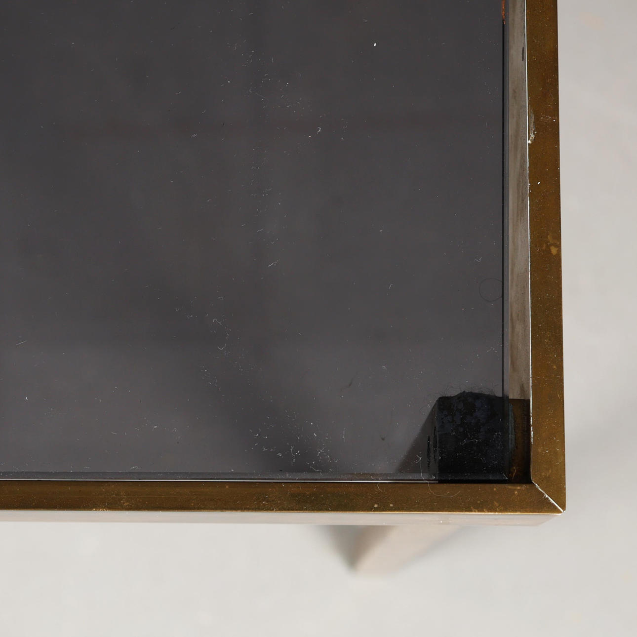 smoked glass on a brass base 7cm t x 133cm w x 52cm d.