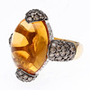 18K gold, oval cabochon cut citrine, 12.88 cts approx. and brilliant cut colourless and brown diamonds, 1.62 cts approx. Size 14/54. 9.1 gr.