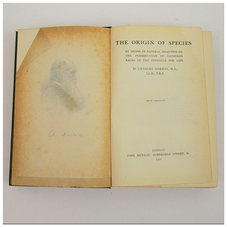 Charles Darwin, English naturalist, (1809-1882). The Life and Letters of Charles Darwin (I-III), Including an Autobiographical Chapter edited by his son, Francis Darwin. 3 vol. John Murray, London, 1888. Seventh Thousand Revised. Three 8vo volumes well bound in red full leather bindings with gilt spine text and rich gilt spine decoration, gold lined covers, blind embossed inner dentils and marbled endpapers. Beautifully marbled cuts. Bound by Mudie. Each volume illustrated with a portrait frontispiece of Darwin. Also, a facsimile from his notebook and a picture of his house. Vol. IN. Front. , (X, (I), 395 p. , (I) + 1 illustration. Vol. II. Front. , (IV), 393 p. , (I) . Vol. III. Front. , IV, 418 p.
