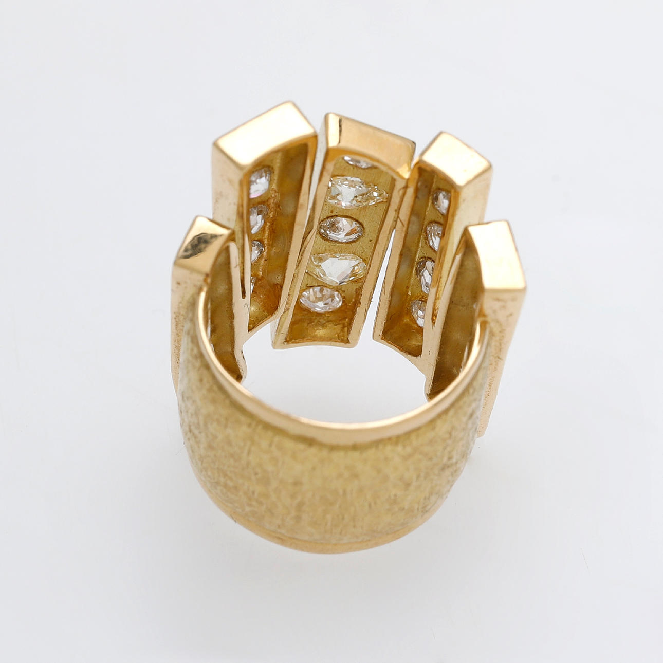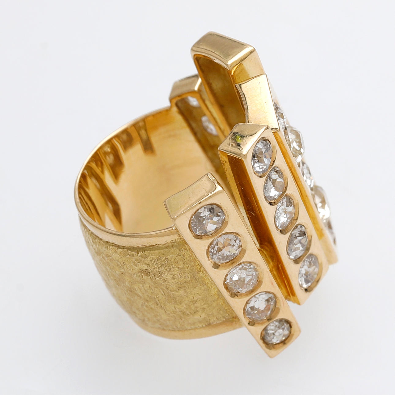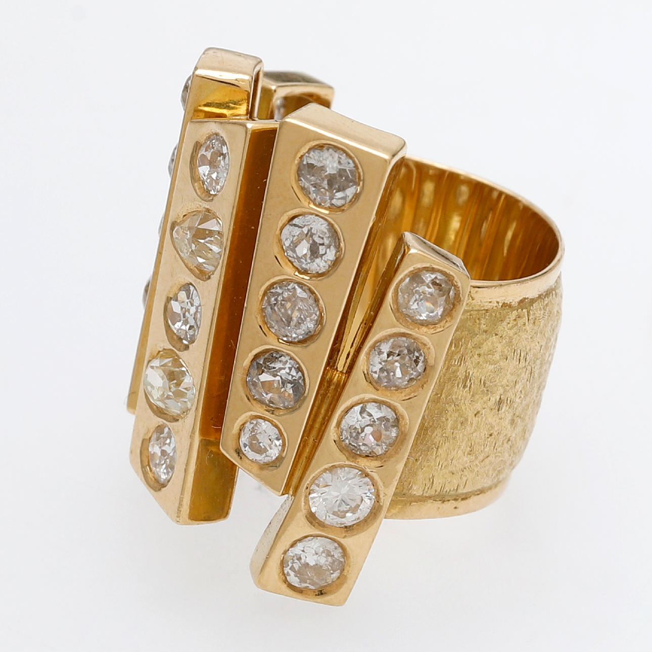 18K gold and old brilliant and old pear cut diamonds, 3.43 cts approx. Size 13/53. 19.1 gr.