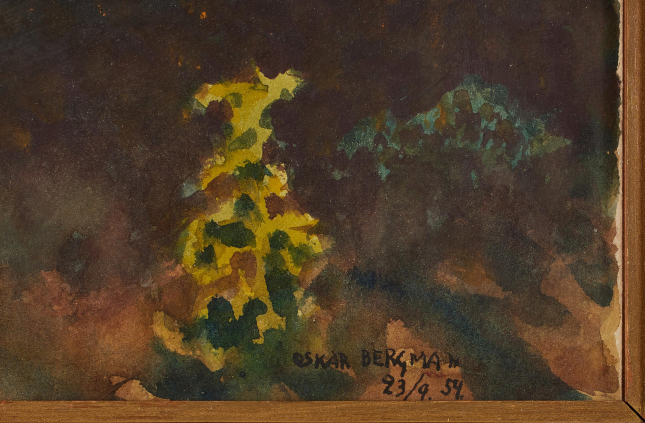 Watercolor on paper, 15 x 21 cm. Signed and dated Oskar Bergman 23/9 54.