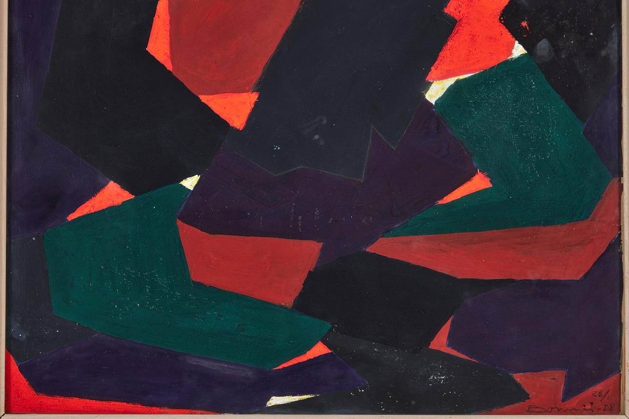 Gouache on paper, 42 x 41 cm. Signed and dated Bonniér 28/1 -58.