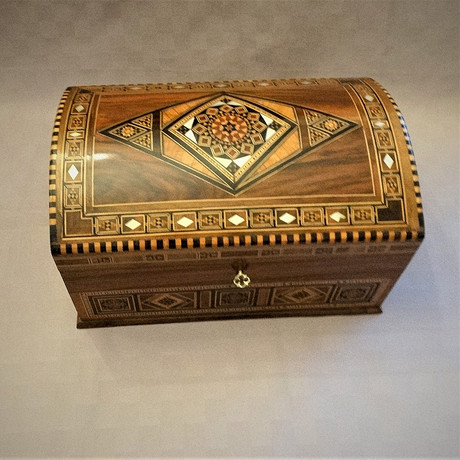 625. 3480847. OTTO WRETLING. “Idealbord”, Umeå, 1930s, veneered with birch, teak and blackened wood, rectangular shape with folding top in light birch with stylized inlays, height-adjustable.