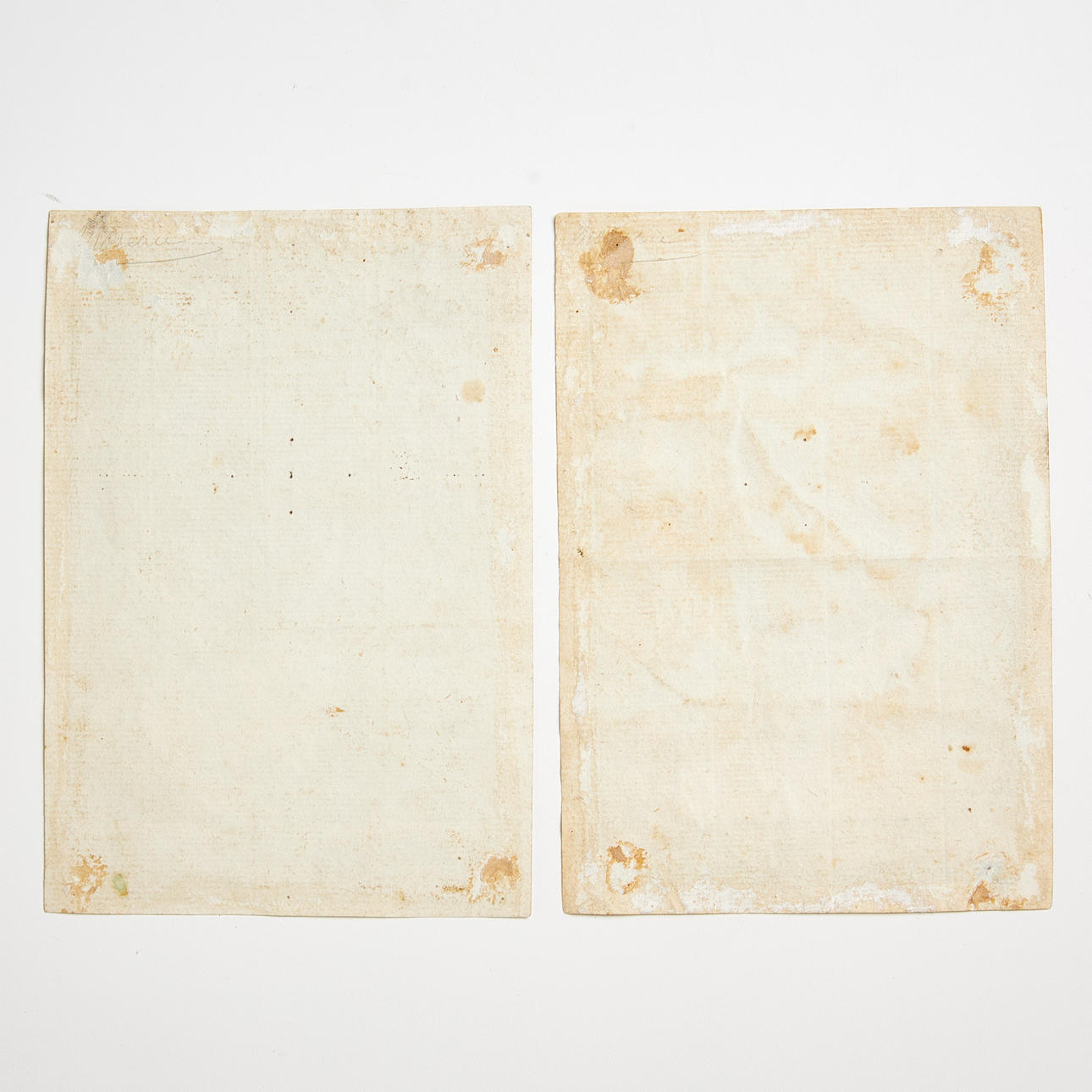 2 models for ornamented portrait frames, ink drawings, c. 1760-80. Dimensions approx. 165 x 11 mm. Both with old note on verso: Moreau. A few small spots.