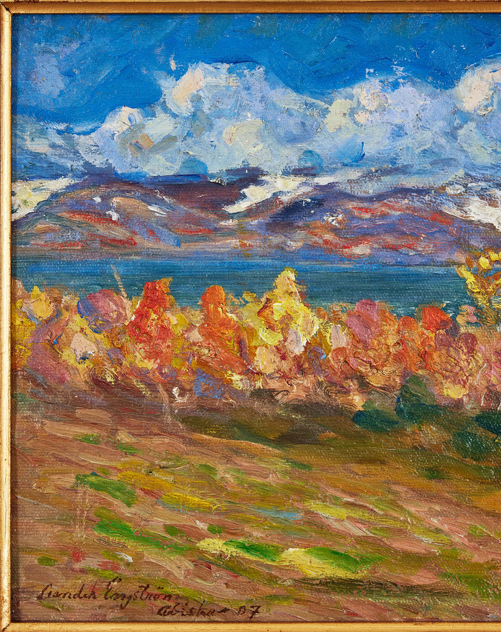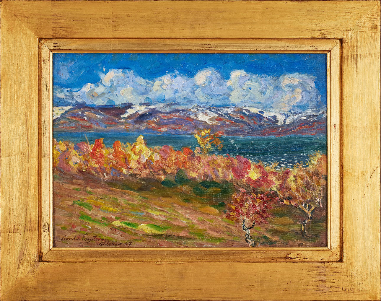 Oil on canvas attached to panel, 31 x 43 cm, including frame 46 x 58 cm. Signed Leander Engström and dated Abisko 07.