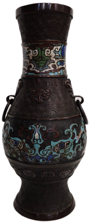 405. 4392110. Stand with double column in onyx, bronze and “champlevé” enamel, late 19th Century.