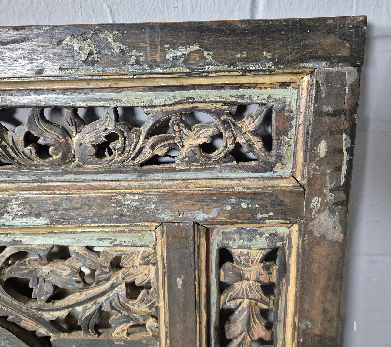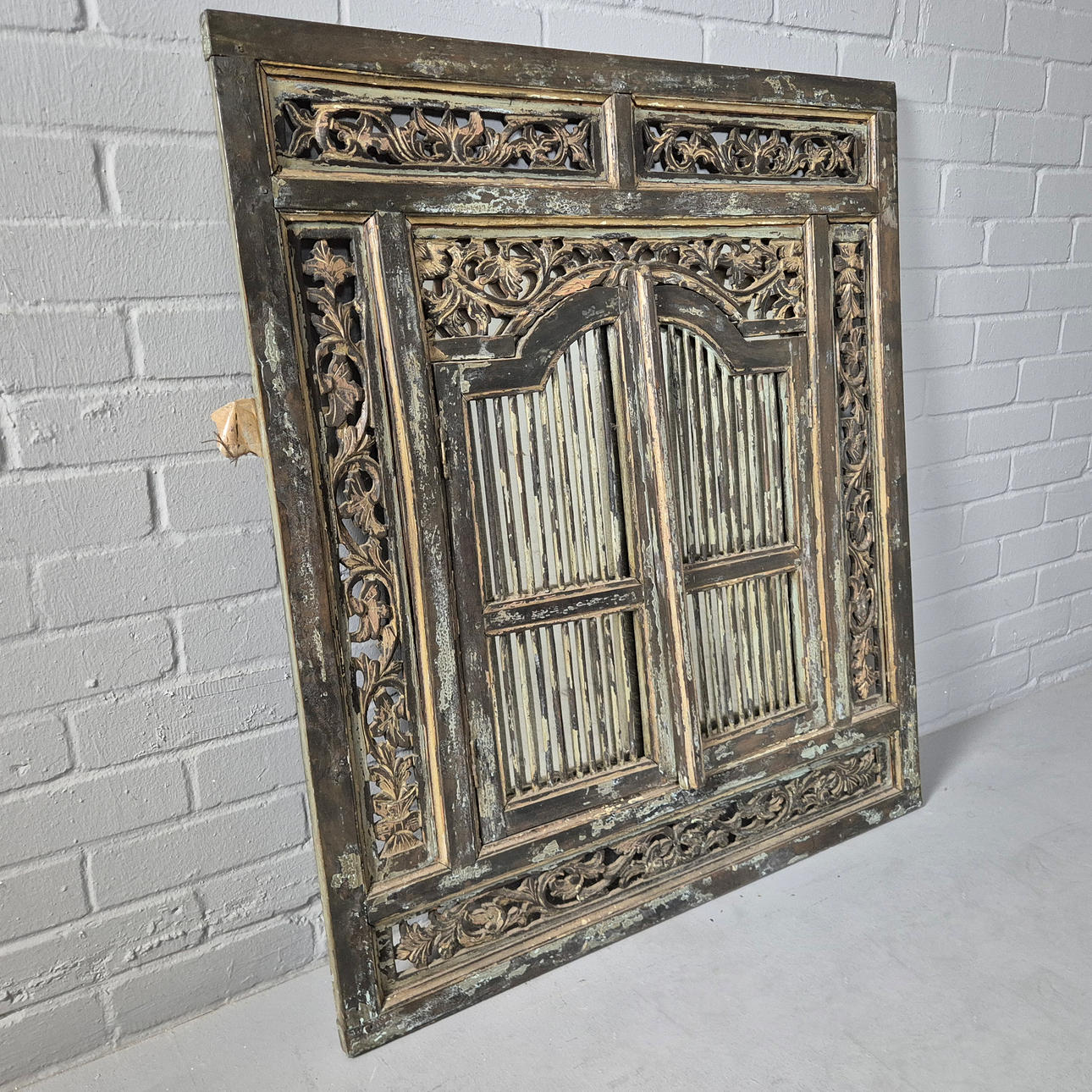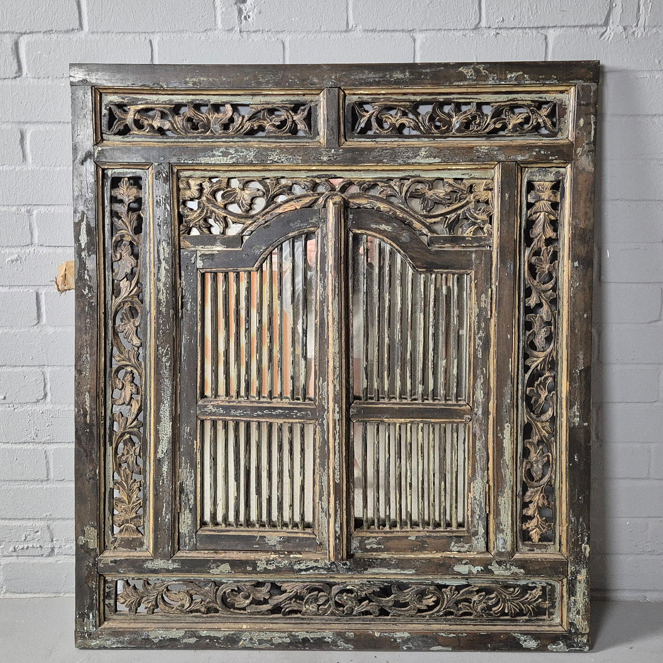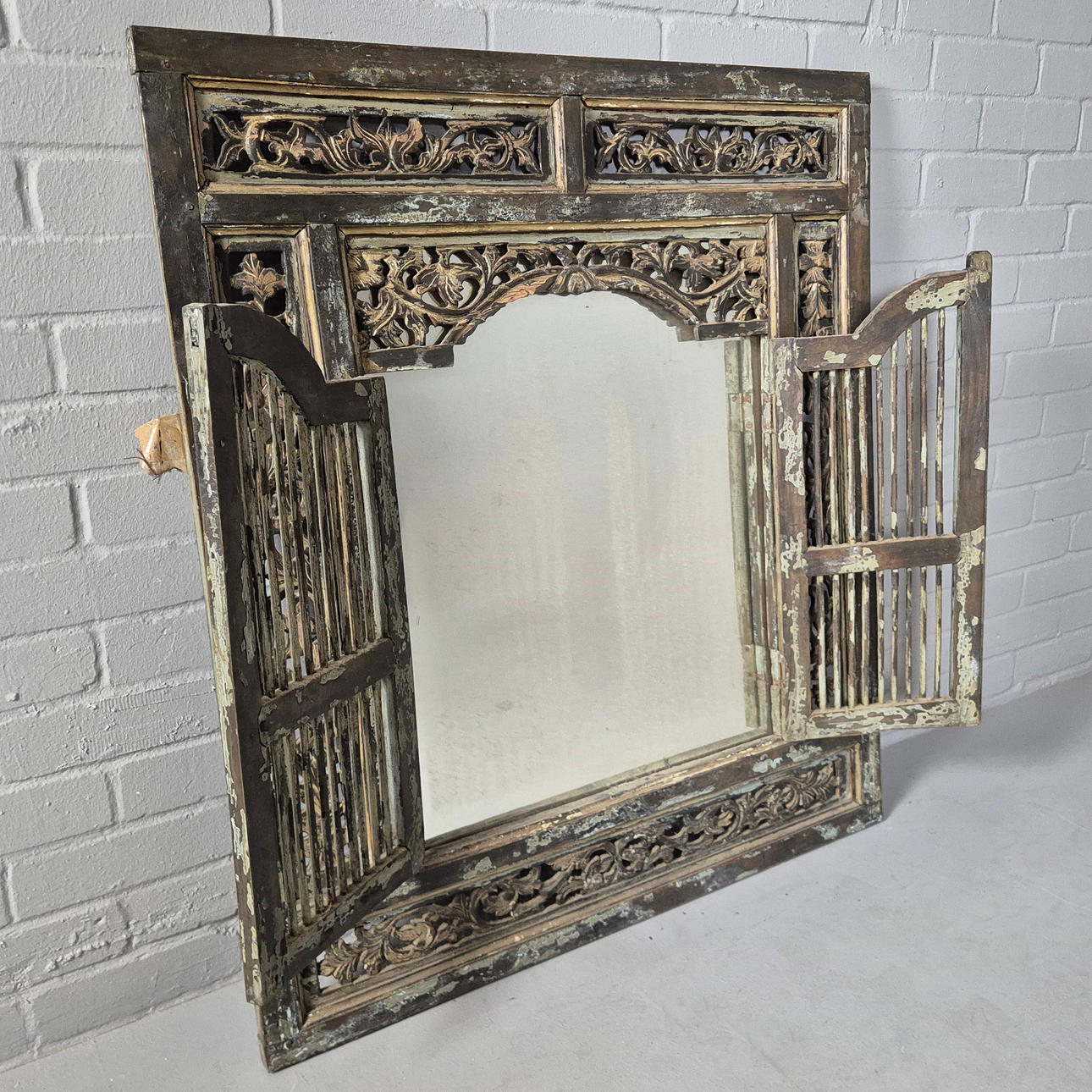 gated wooden frame in aged finish, 92cm x 104cm approx.