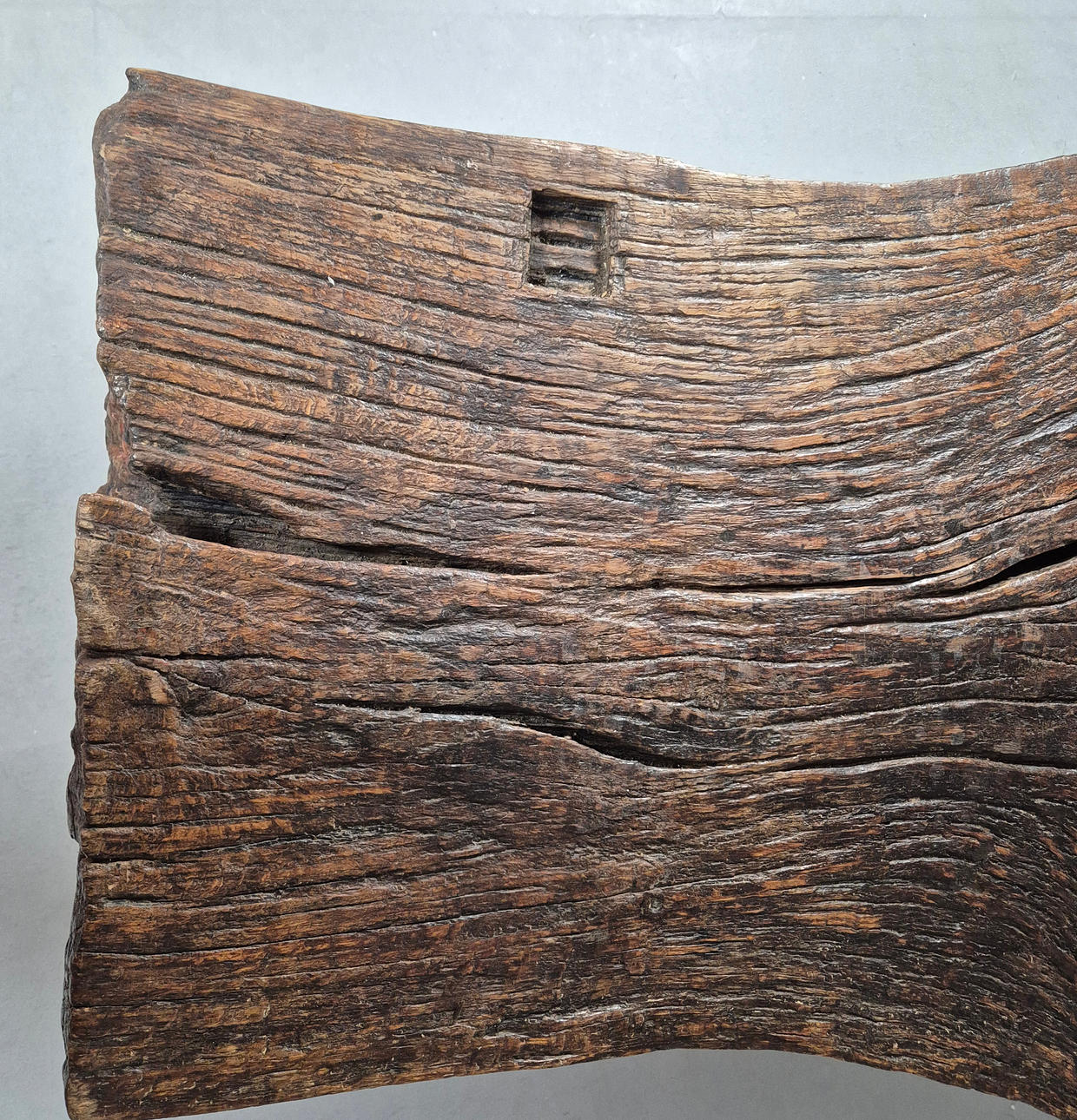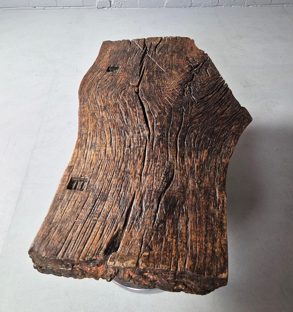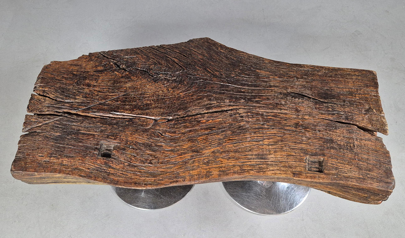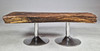 solid oak on chrome supports, 43cm H x 120cm W x 65cm D.