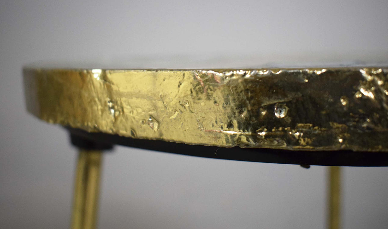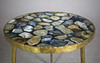 agate top in resin, gilt supports, 45cm diam. x 49.5cm H approx.