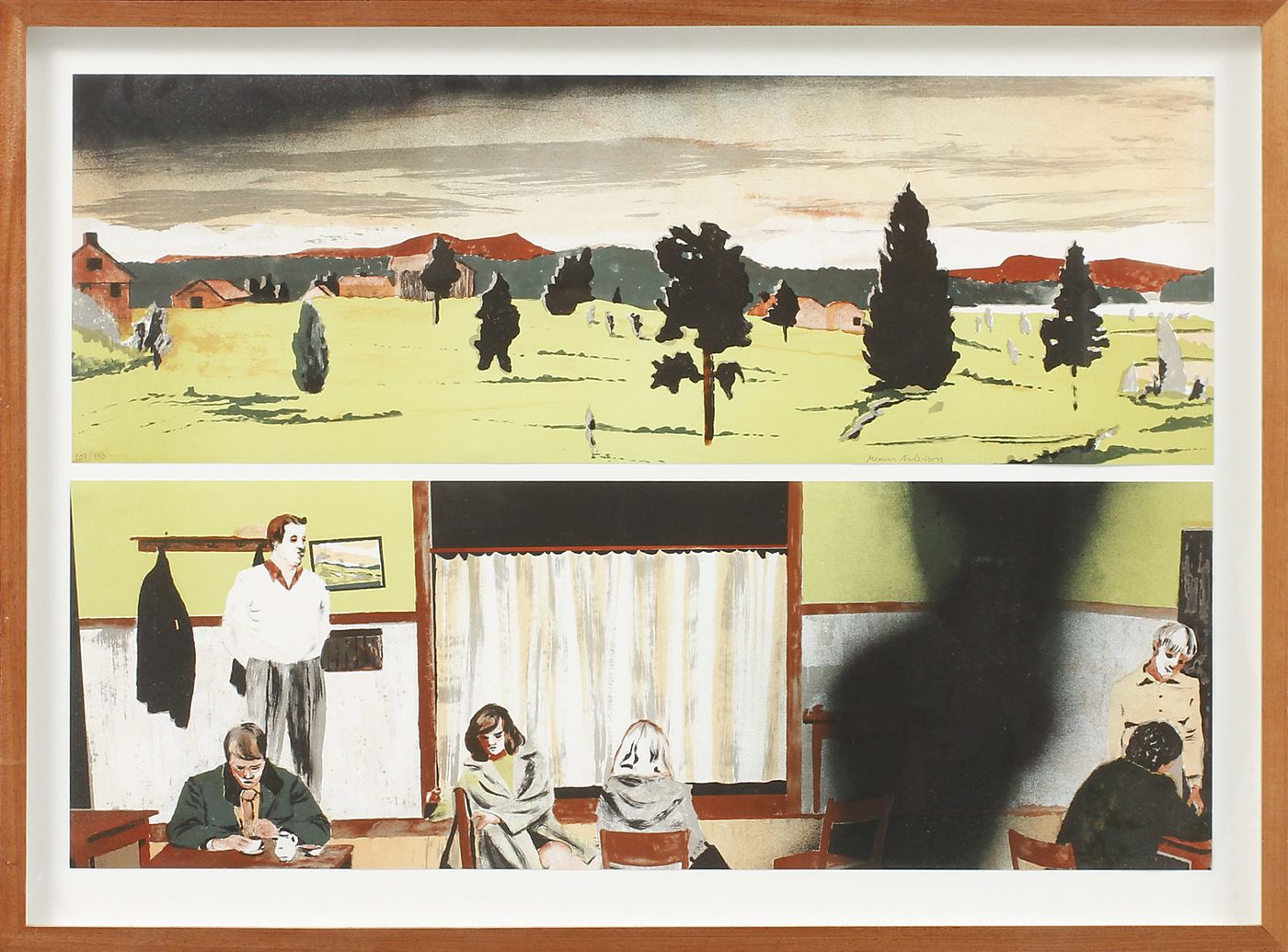 She draws inspiration from a variety of sources, including film, theatre, literature, and art history. Her paintings often resemble small scenes from a film or a book, where the viewer is invited to create their own story using details such as a half-full coffee cup, tyre tracks in freshly fallen snow, or reflections in a mirror-like lake. Mamma Andersson rarely plans her works to become narratives; instead, the story often takes shape in the process of creation.