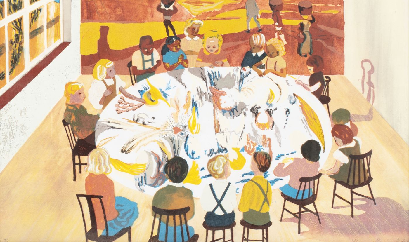 Karin Mamma Andersson’s paintings are often described as atmospheric and dreamlike, in a “Nordic noir” style. Swedish nature, folktales, and myths are recurring themes in her vibrant works, as is ordinary life. She herself describes them as “lightning bolts in everyday life” – perhaps we see a chaotic family dinner on a Friday night? Or a solitary bedroom on an early weekday morning?