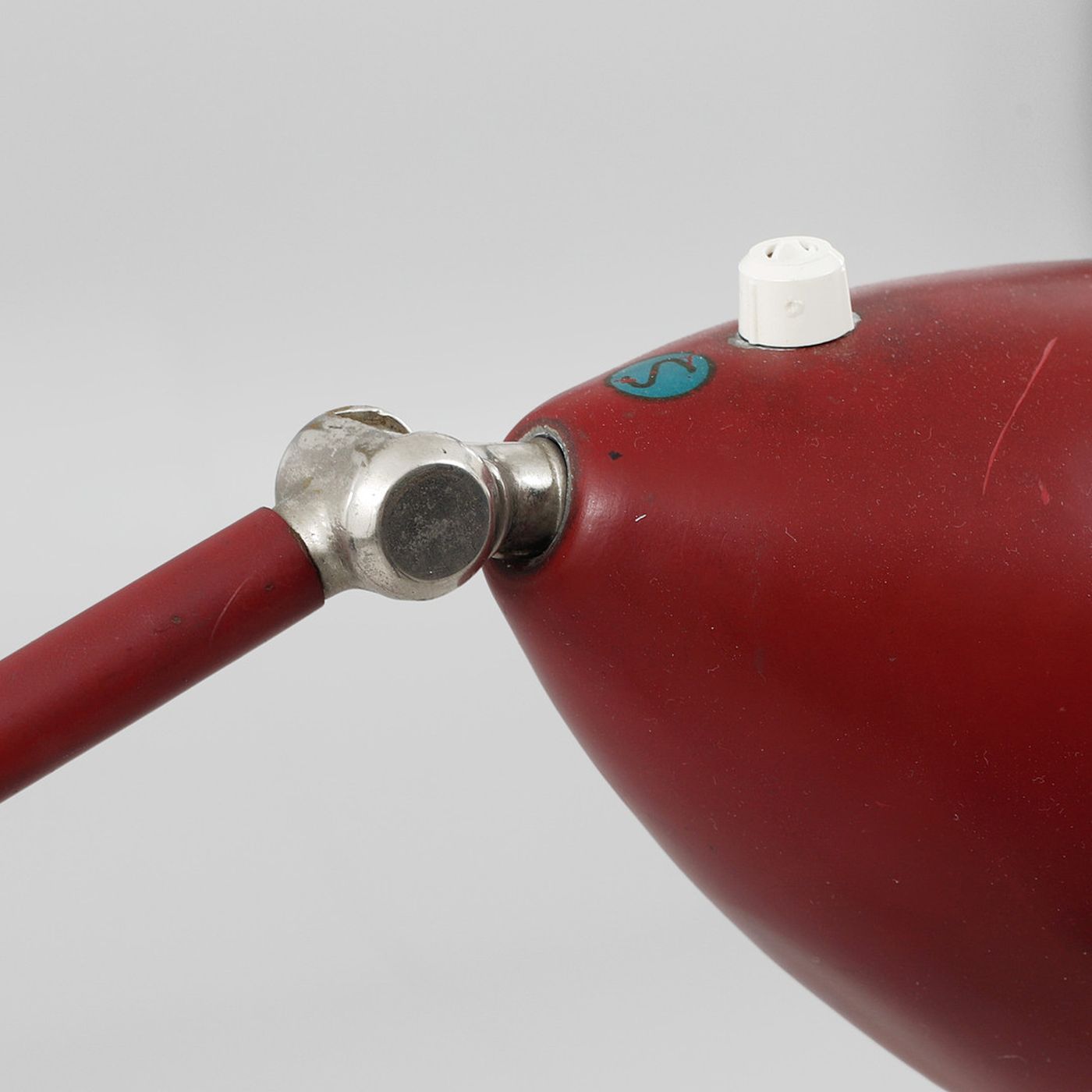 Over decades, vintage lamps develop a natural patina with minor wear, subtle rusting, or chipping on the powder-coated steel or aluminum. Reproductions, in contrast, have flawless surfaces with no signs of aging.
