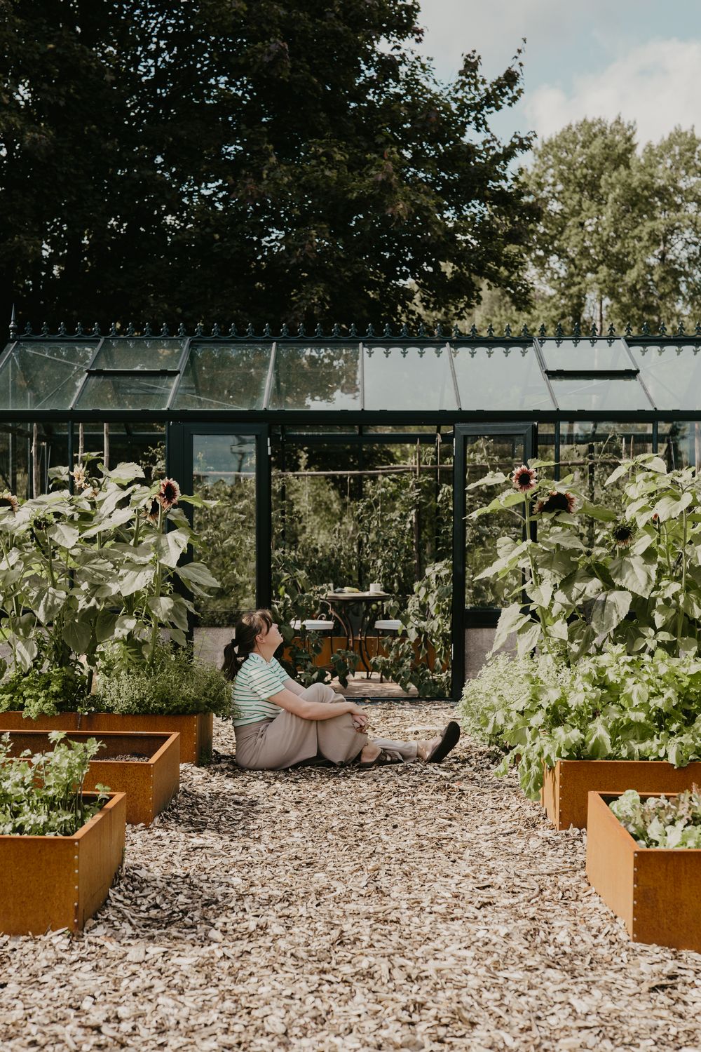 Gardening is one of Johanna’s great passions. Here she is outside one of her greenhouses.