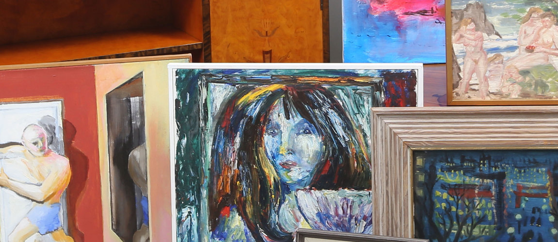 Welcome to browse among over 80 different works that all have in common that their creators originate from Östergötland. Eskil Nordell, Pär Thorell, Gideon Eriksson, Martin Lindström, and Peter Raners are some of the names represented, as well as Åke Bjurhamn who is responsible for two typically blue paintings.