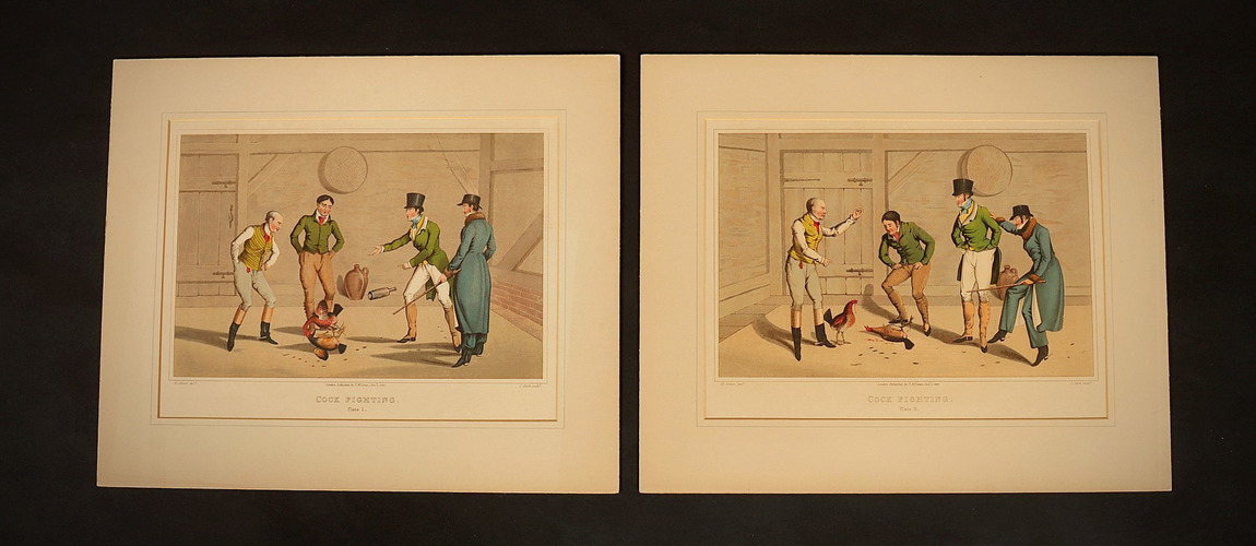 Auktionsverket Engelholm transports us to 19th-century England, revisiting a phenomenon that once enjoyed great popularity. Delving even further back, history tells of Henry VIII commissioning a cockfighting arena in Whitehall, London, during the first half of the 16th century. At Auktionsverket Engelholm, we encounter around forty hand-colored scenes where roosters naturally take center stage, occasionally accompanied by distinguished gentlemen sporting top hats.
