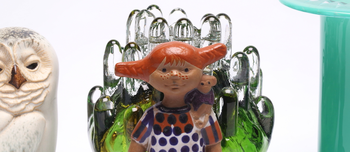 The heading Ceramics and Glass provides a straightforward indication of what Gomér & Andersson Linköping currently has on offer. Among the glass works we find pieces by Ulrica Hydman-Vallien, Kjell Engman, Mona Morales-Schildt, and Bertil Vallien. The ceramics section features works by Wilhelm Kåge, Gunnar Nylund, Åke Holm, and Erich and Ingrid Triller.