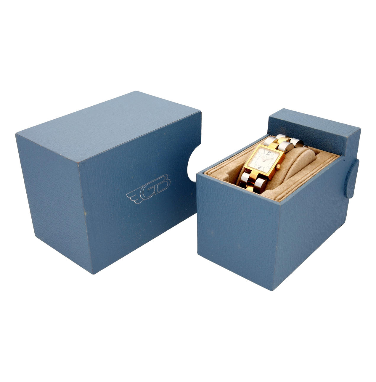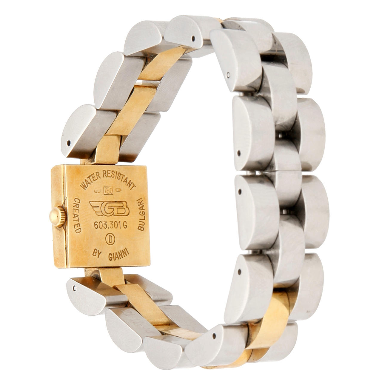 Caja de oro amarillo 18 con 18,6mm de diámetro. Brazalete en acero y oro con cierre doble desplegable oculto. Movimiento de quarzo. Cristal zafiro.