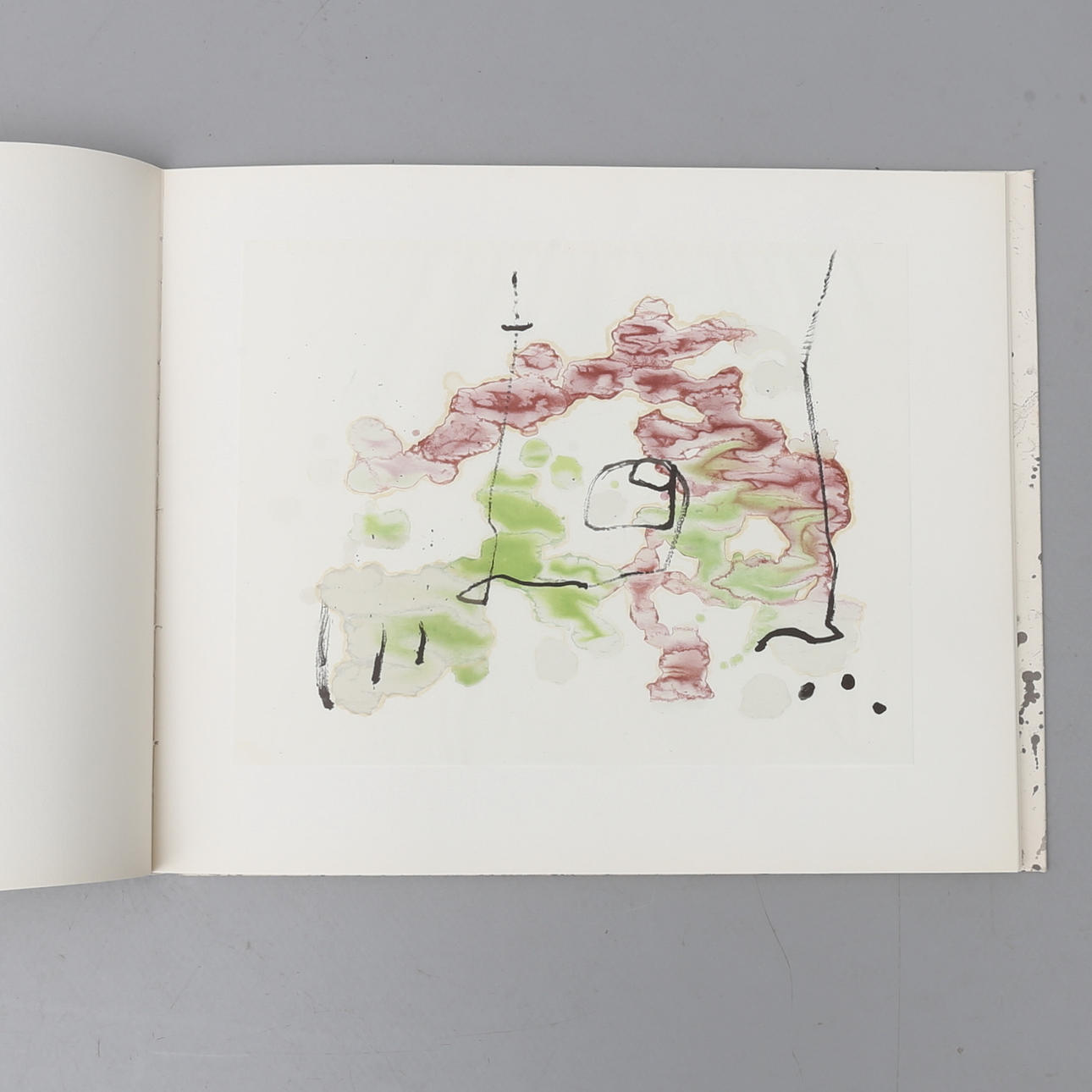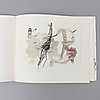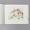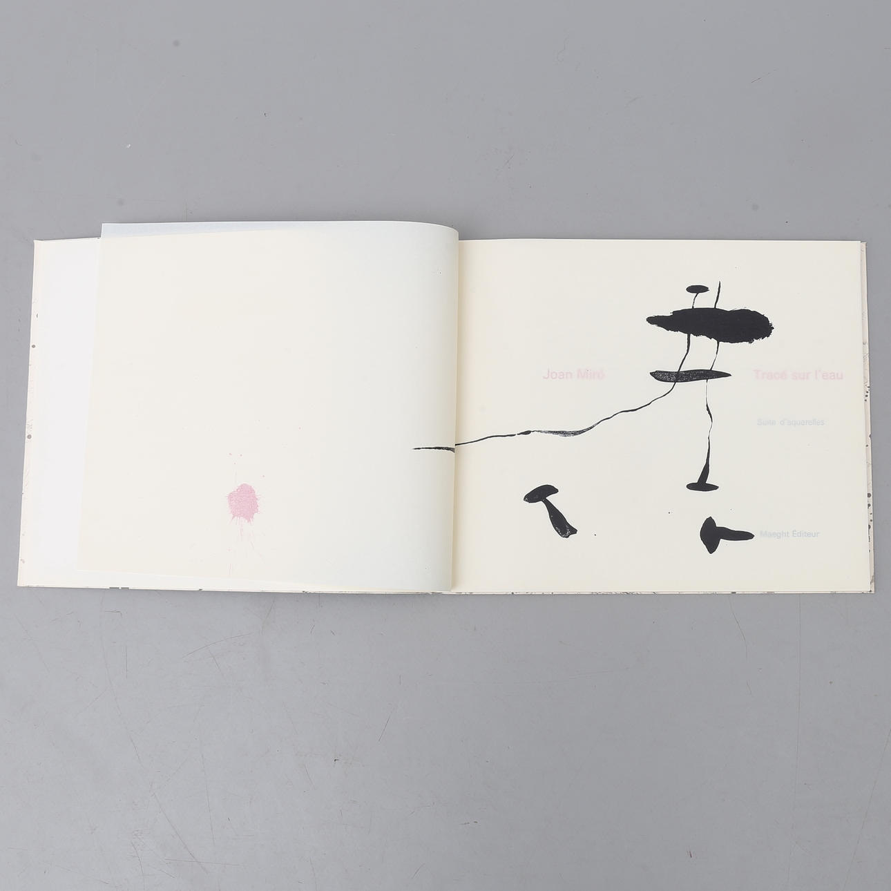 Modernismo. Miro, Juana. Trace sur l'eau; Suite d'aquarelles., Maeght Editeur, París, 1963. Folio oblongo grapado donde la portada es una litografía original de Miro. Contiene, además de la litografía original, 15 reproducciones de acuarelas de las cuales 14 están montadas en las páginas.