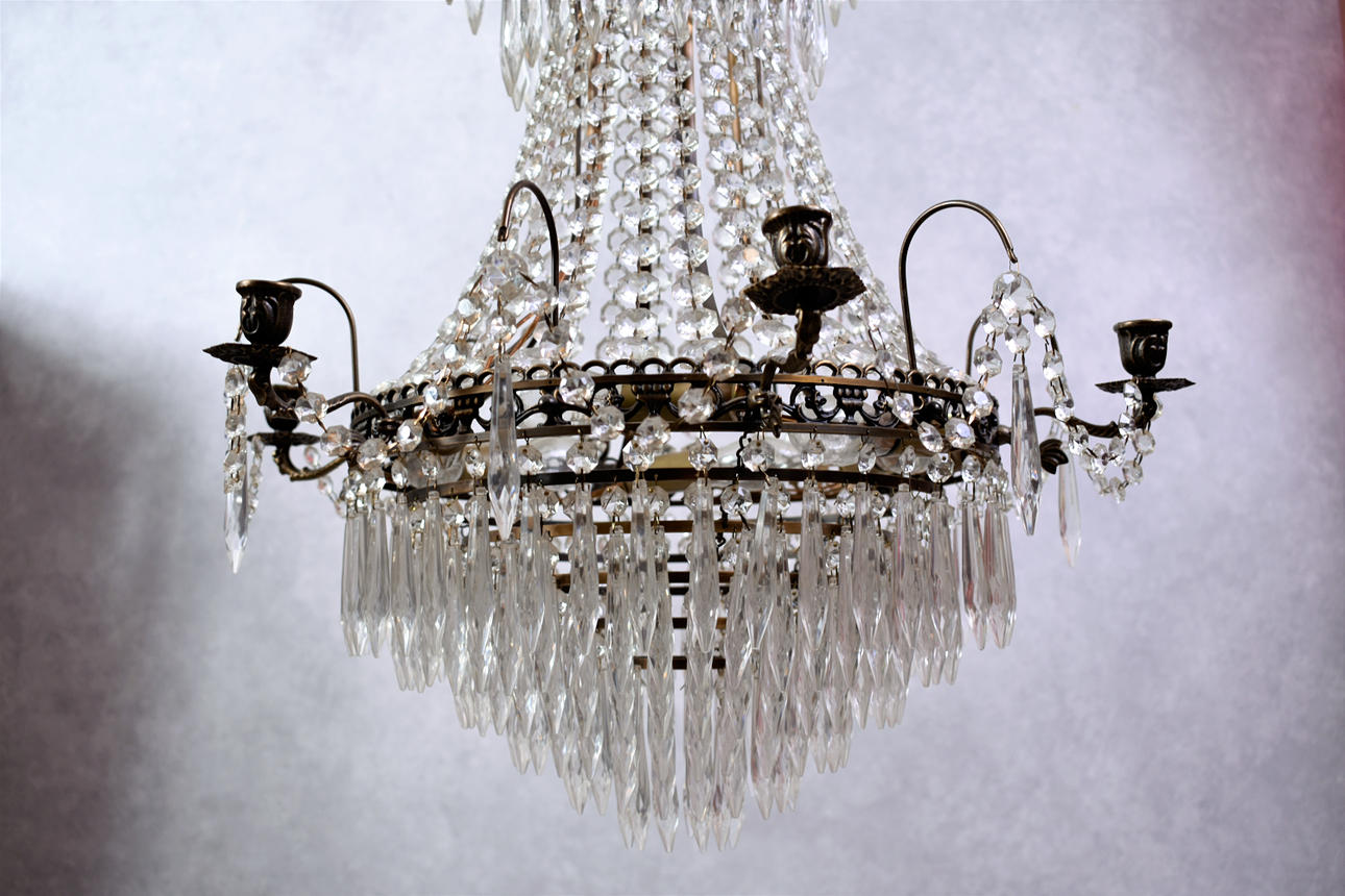Candelabro estilo imperio 1900 Altura 80 cm tot con cadena 115 cm Diámetro aprox 55 cm.
