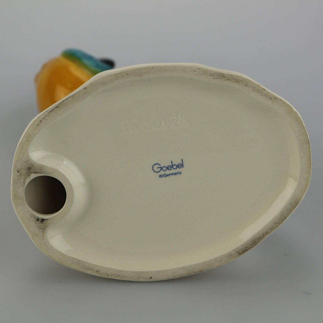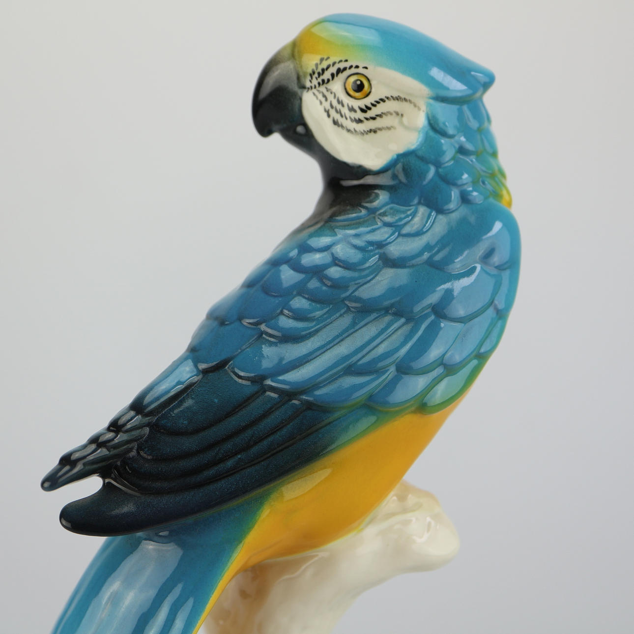 Una figura de loro de cerámica de Goebel, pintada, vidriada, altura 29 cm.
