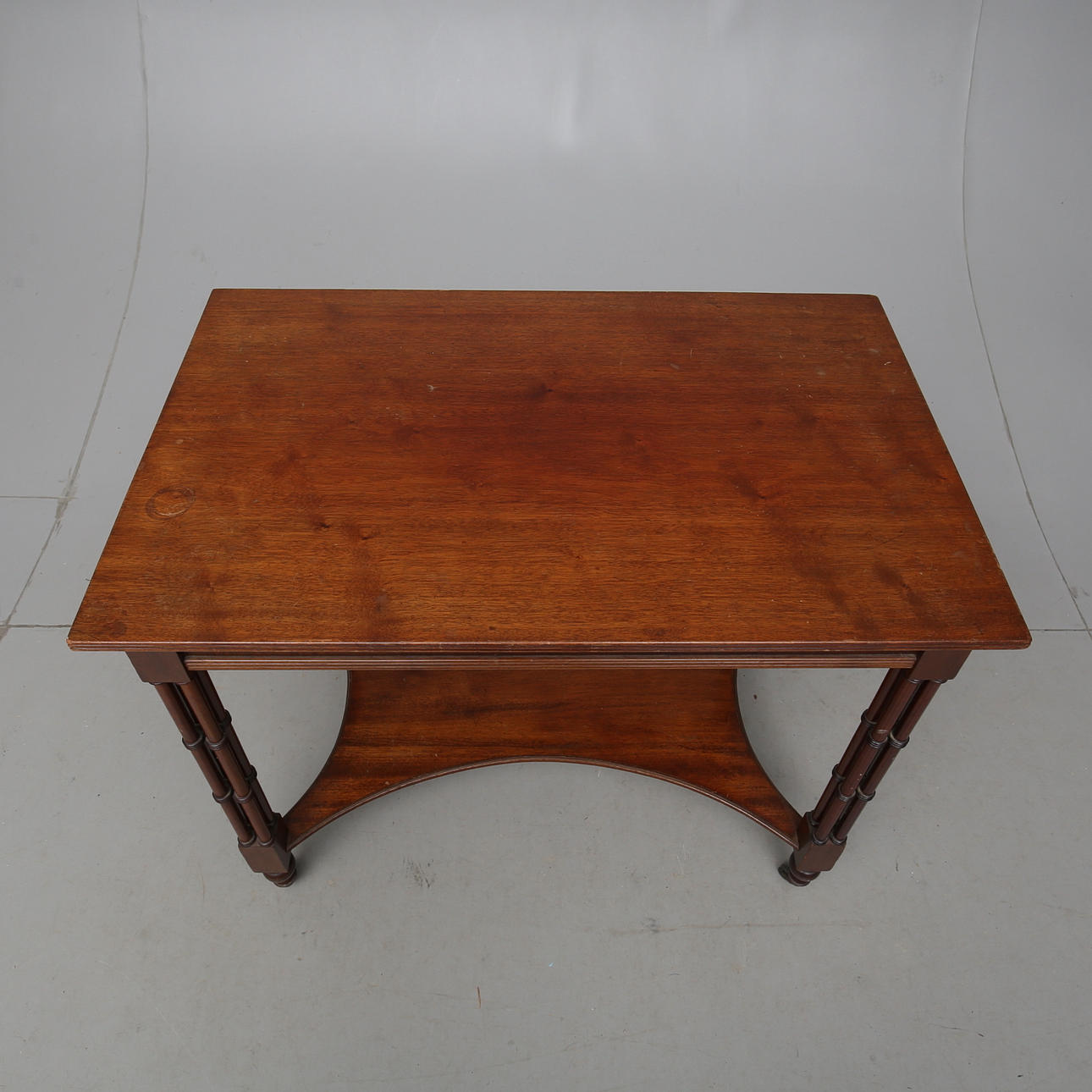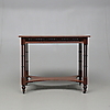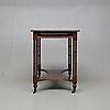 Madera dura teñida. Ataúd con decoración calada. Extremo de la pierna con poleas de ruedas. Longitud 86. Ancho 54. Altura 72 cm.