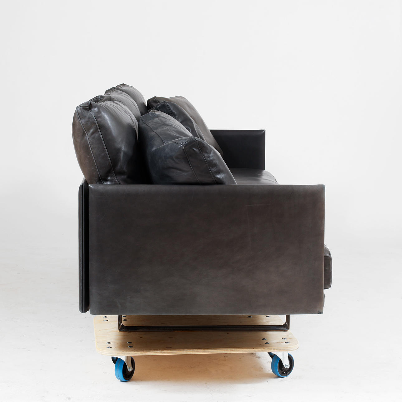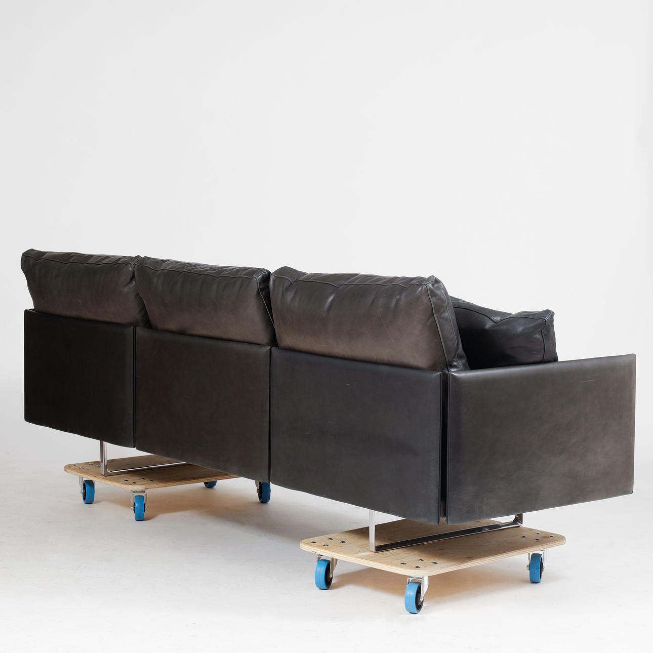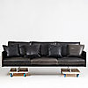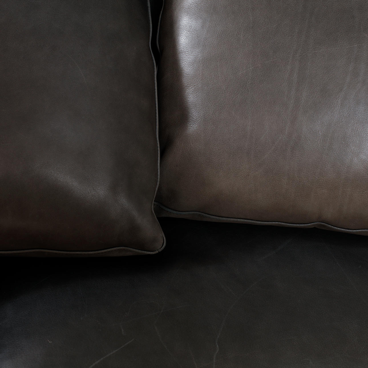 Estructura de aluminio regulable revestida de piel azul noche, naturale. Cojines sueltos. Longitud aproximada 265, profundidad aproximada 90, altura aproximada 90 cm.