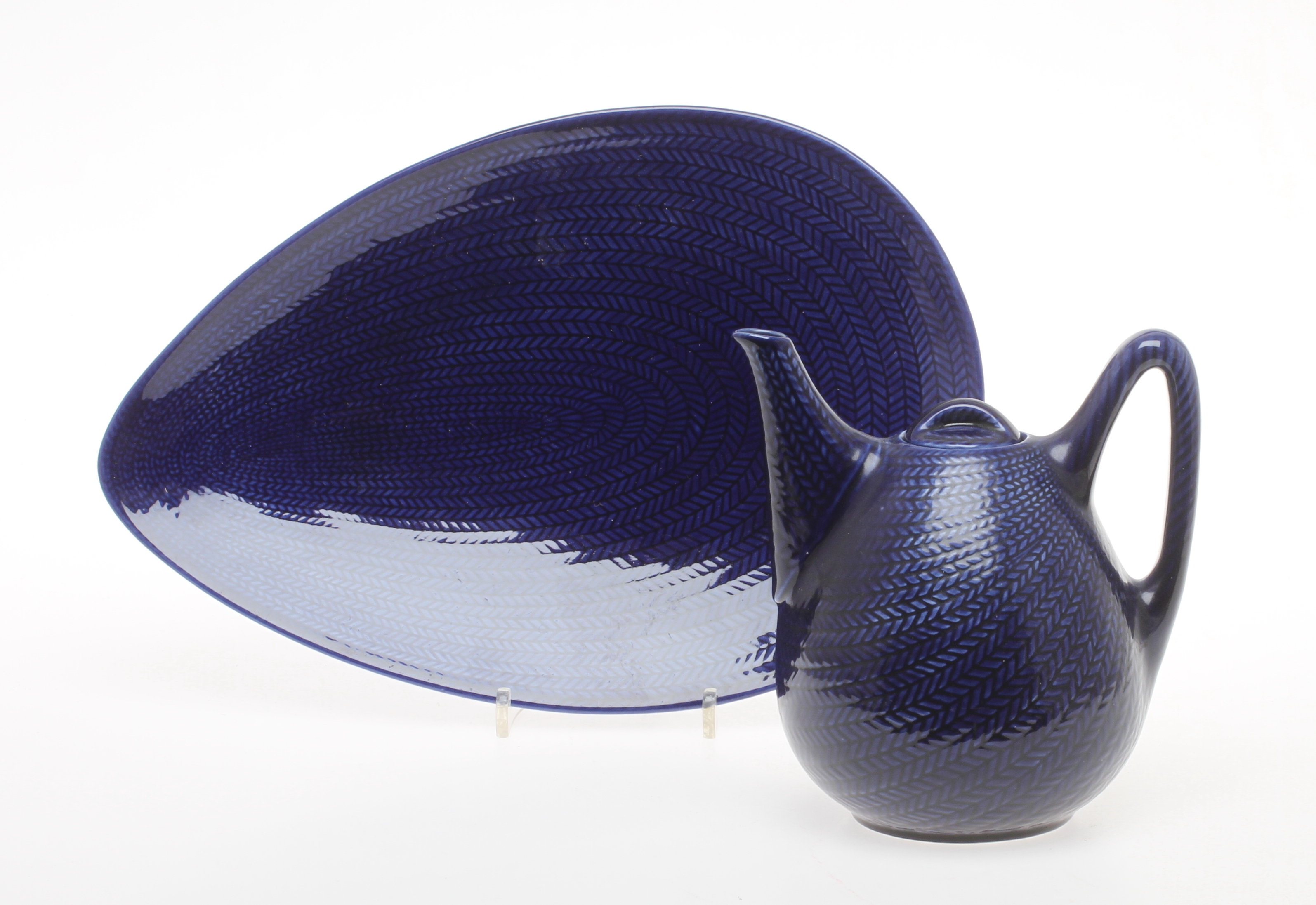 105280. Tetera y PLATO, porcelana, "Blue Fire" Rörstrand.