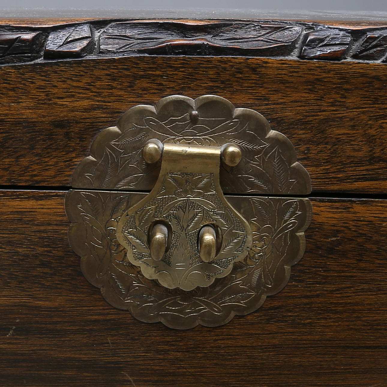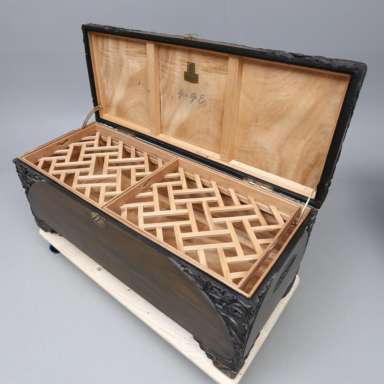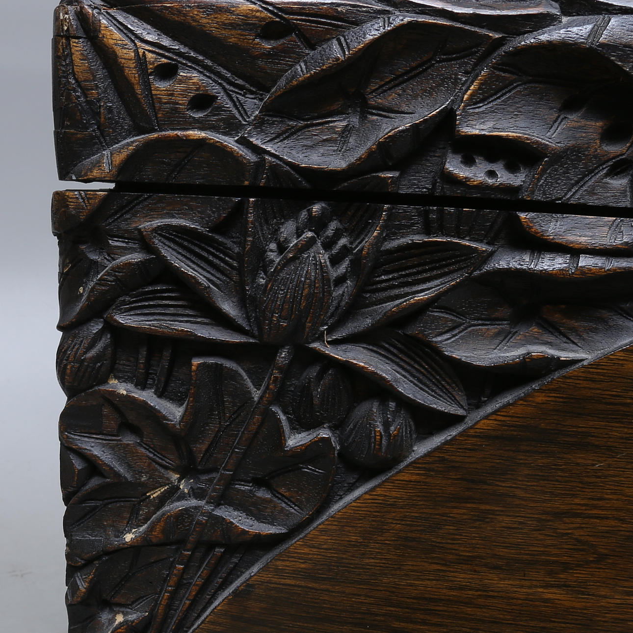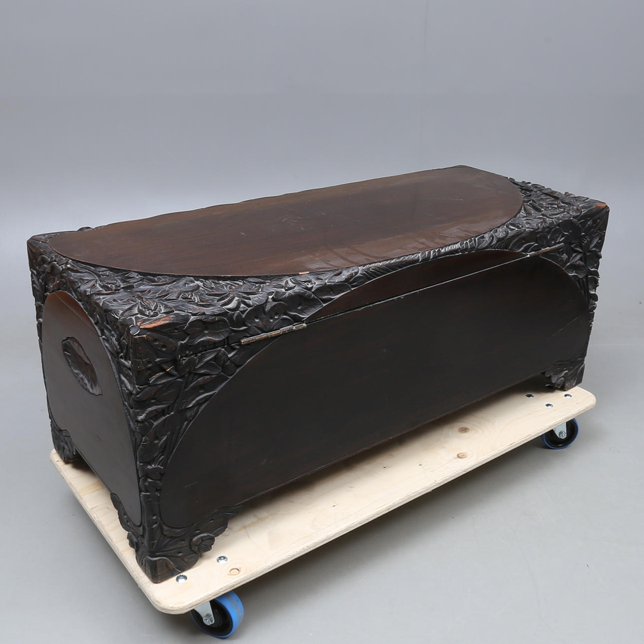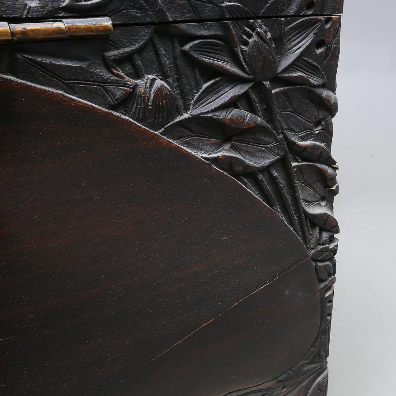 Decoración en relieve de, entre otras cosas, nenúfares, libélulas y saltamontes. Largo 122, ancho 49, alto 49 cm.
