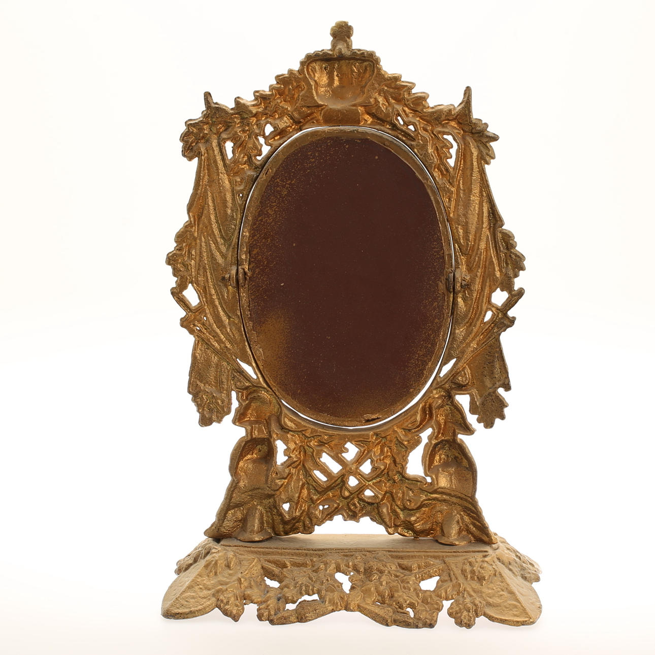 1055917. ESPEJO DE MESA, hierro fundido bronceado.