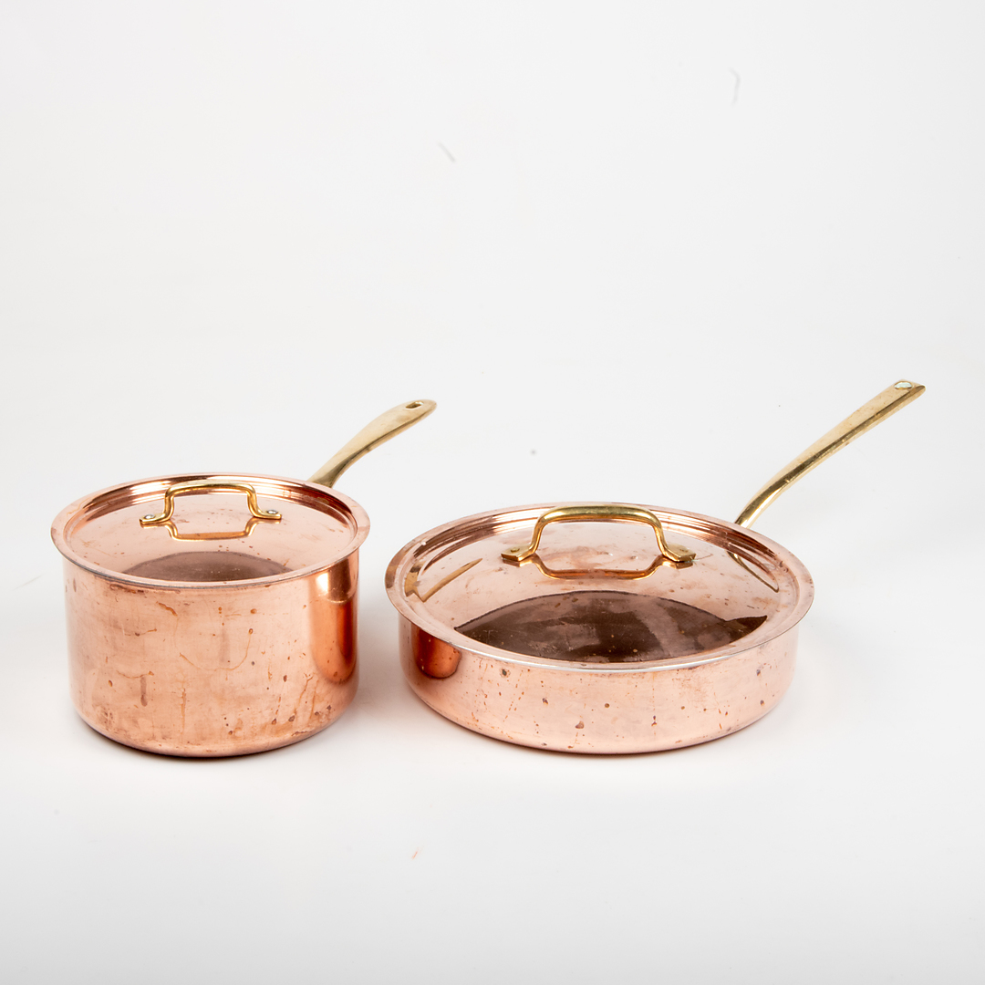 1058300. CALDERA Y BANDEJA DE Sartén , cobre, i.a. Hackman.