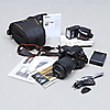 Batería, cargador, cable de alimentación, cable USB, tapa del visor Tarjeta de memoria 2 GB Estuche Lowepro Unidad de flash Sunpak PZ42X Manuales de usuario, folletos, CD-ROM con software asociado.