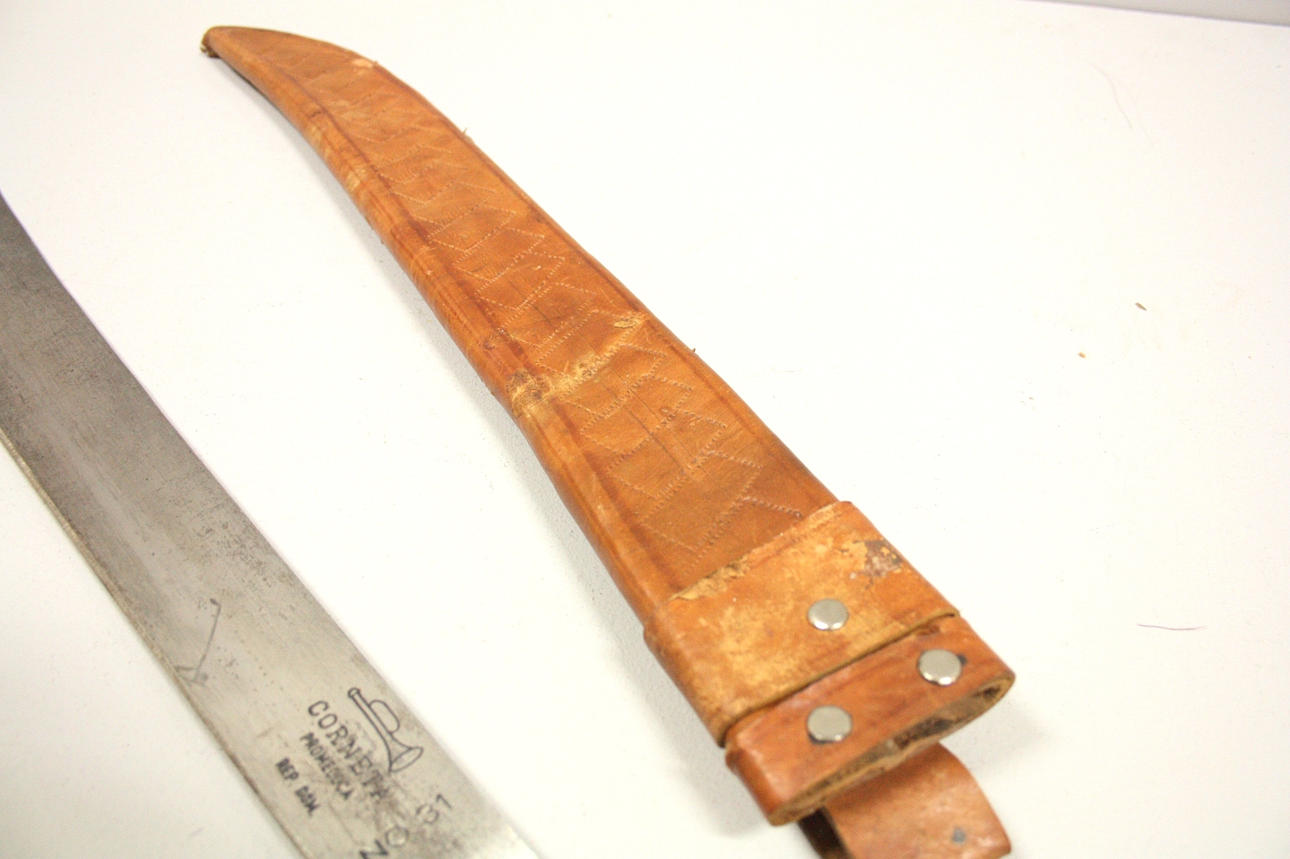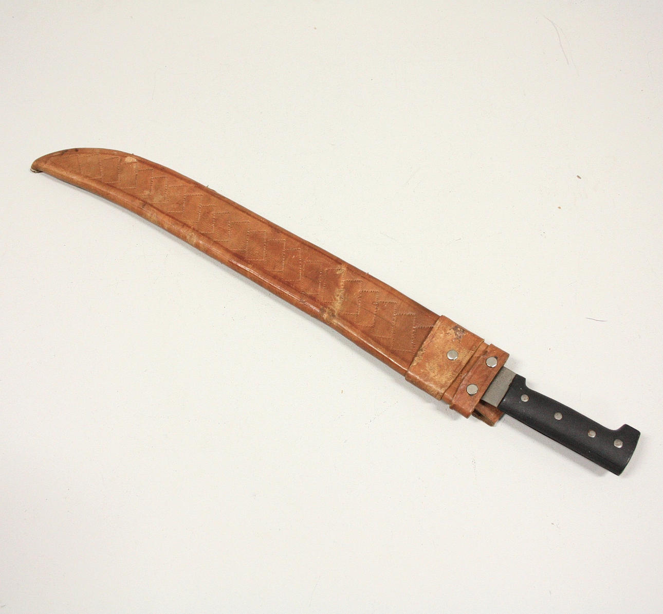 Longitud total 69 cm Hoja: 56,5 cm Funda de cuero.