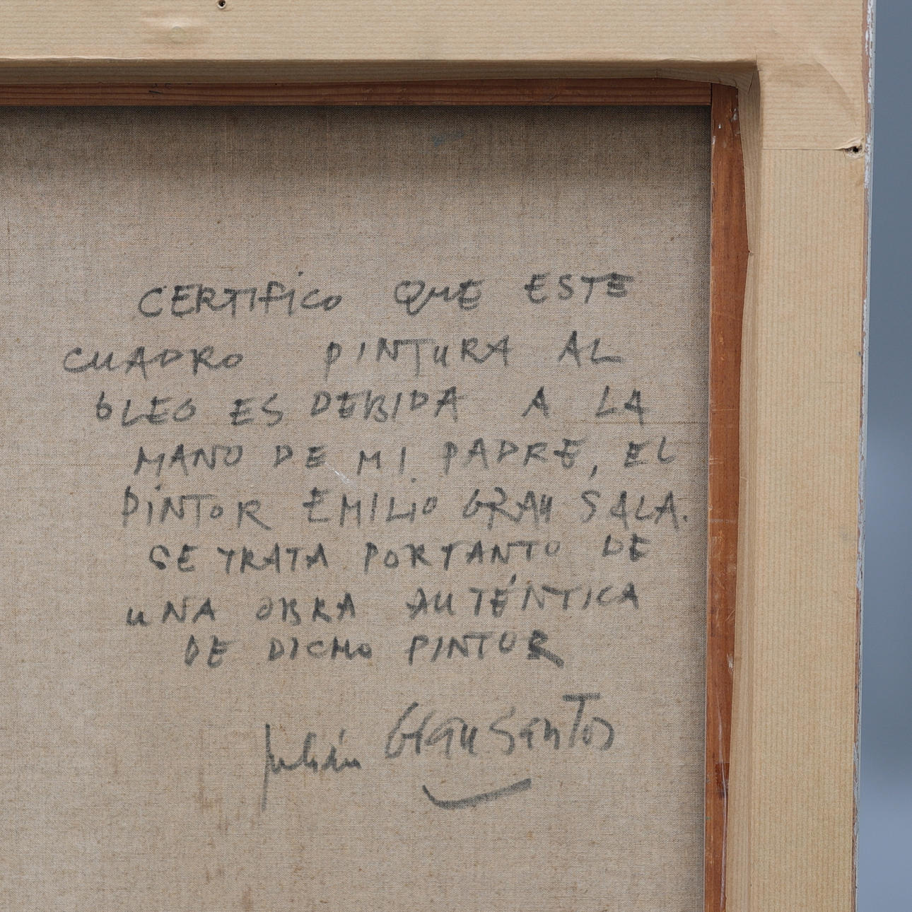 En el reverso, certificado por el hijo del artista, Julián Grau Santos