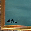 Leves desperfectos. Travesaño central del bastidor alabeado. Marco en madera moldurada y dorada