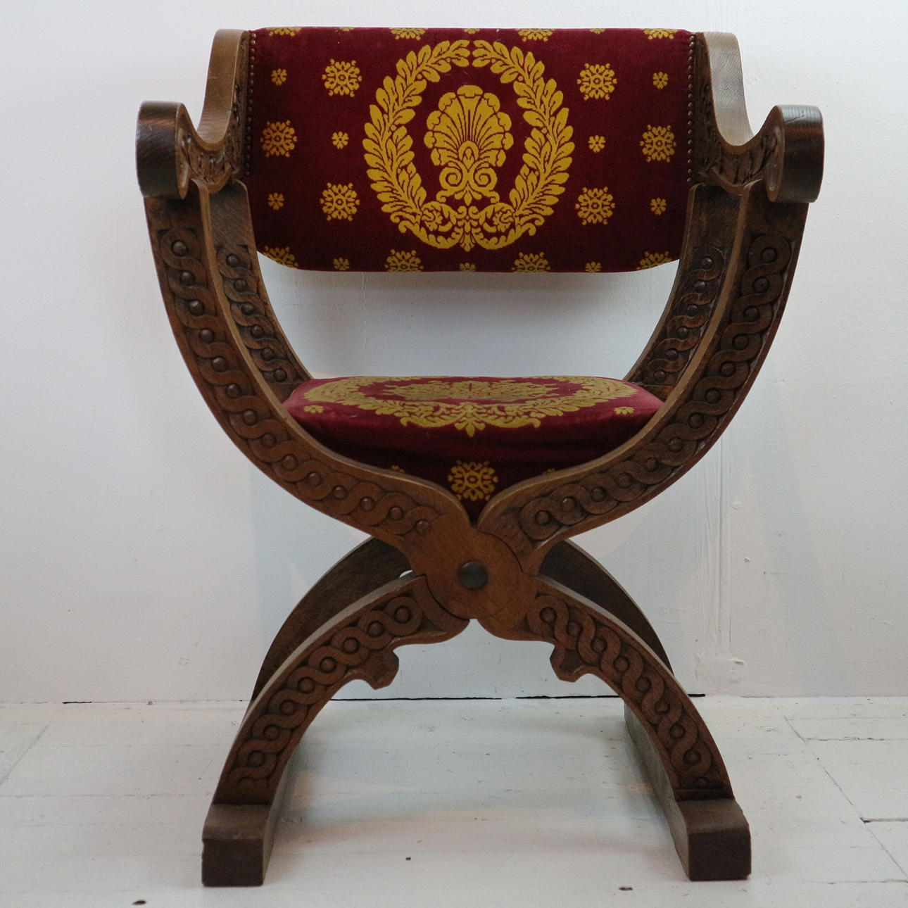Una silla de tijera antigua, Alemania, siglo XIX, Roble, tallado.