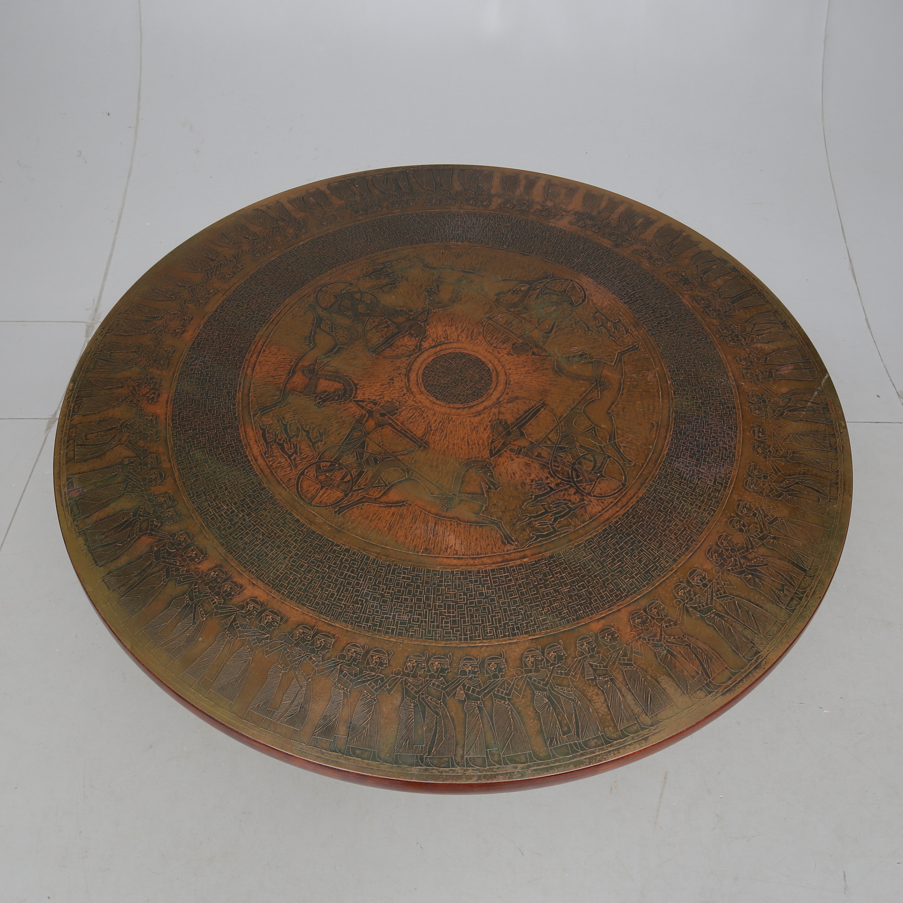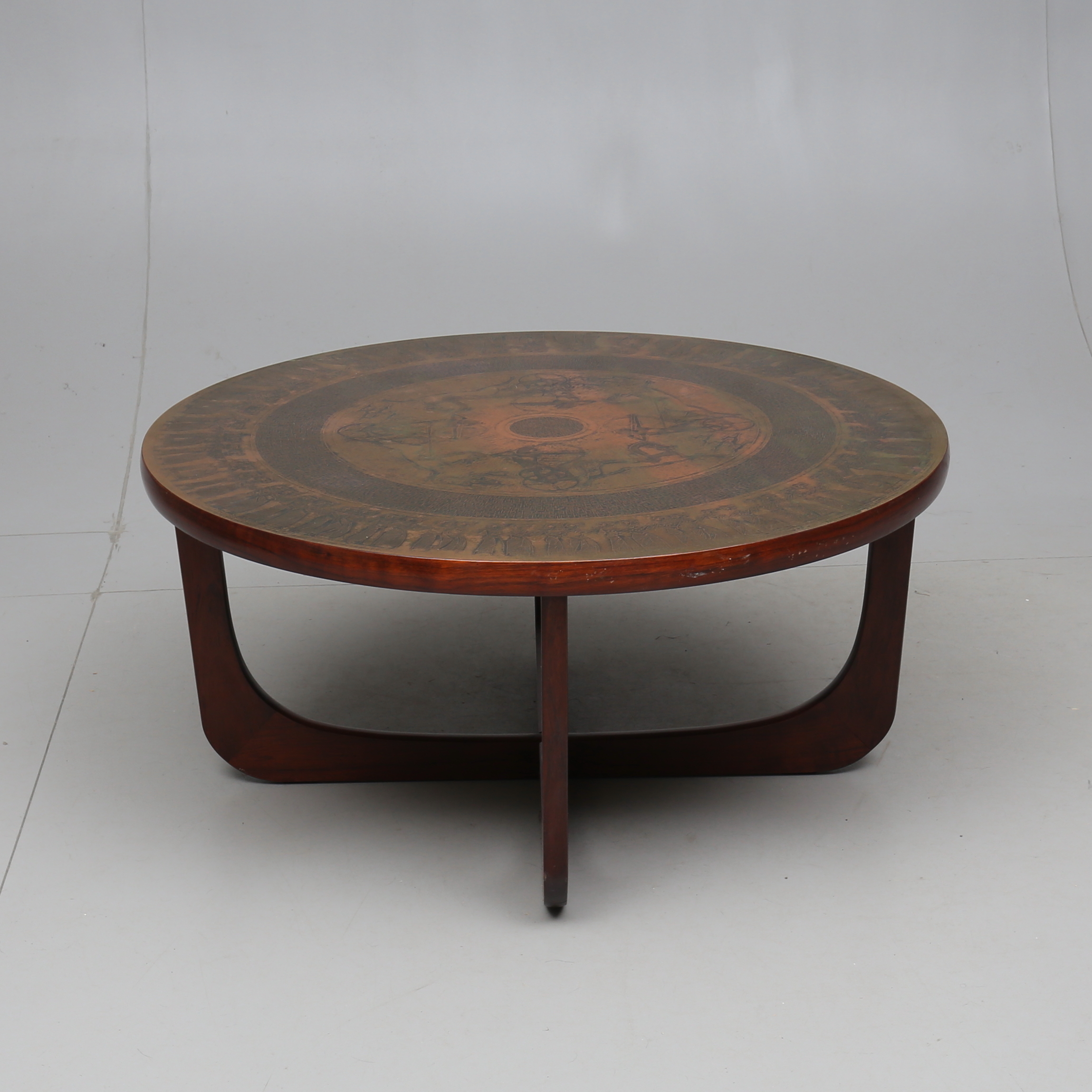 1082738. MESA DE CENTRO, cobre/madera, años 60/70.