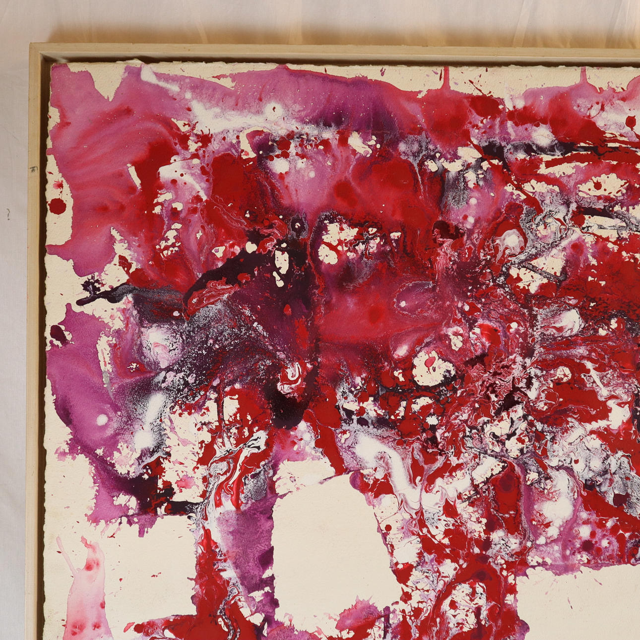 Artista abstracto (s.) - Composición abstracta al estilo de "Action Painting" basada en Jackson Pollock, técnica mixta sobre papel hecho a mano, reforzada con plancha, inscrito "EA" e indistintamente firmado "Ratters"?, ca.101x152cm, enmarcado en una barra estrecha.