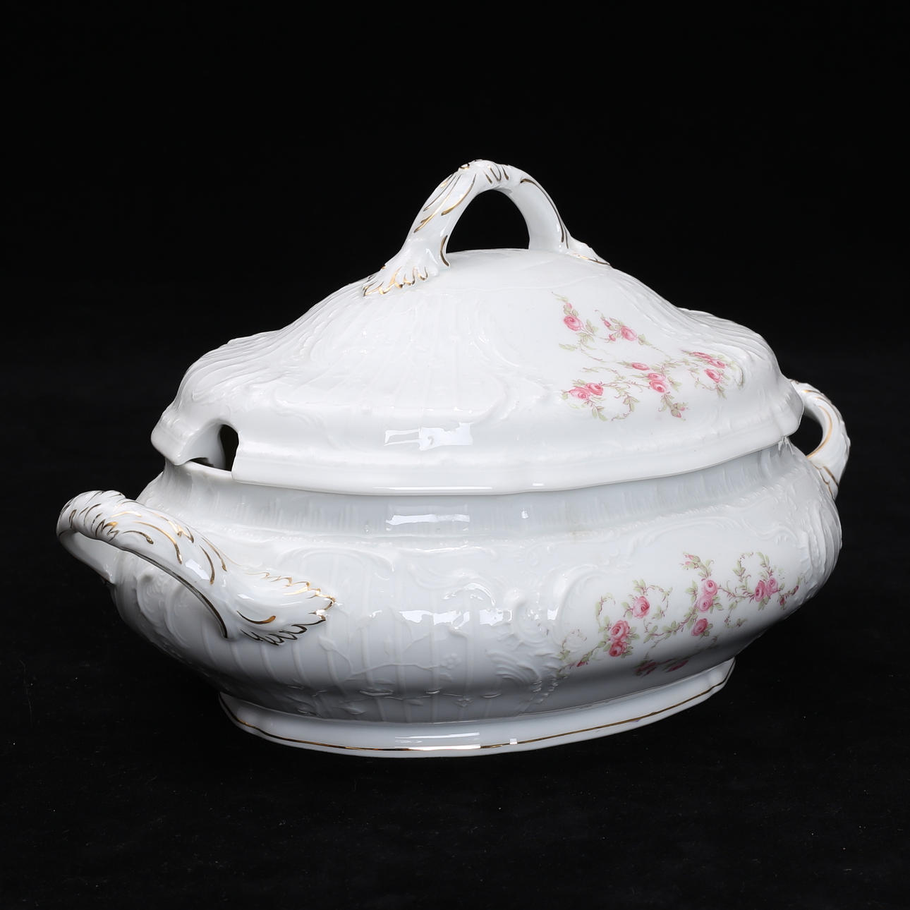 Terrina, altura 20, largo 34, ancho 21 cm.